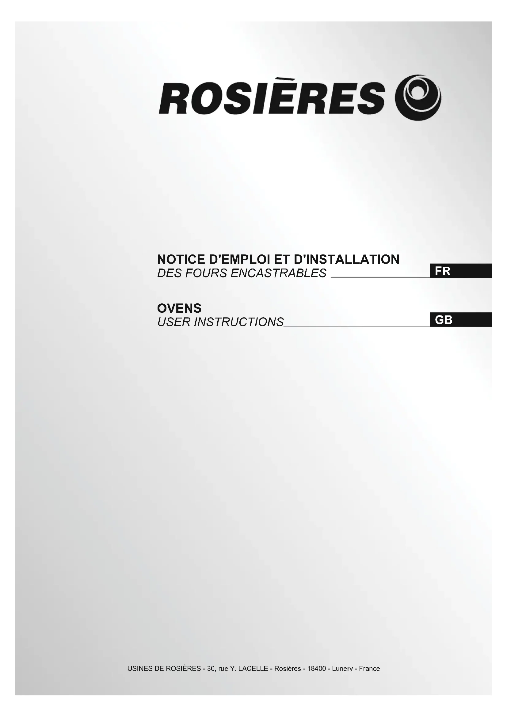 RFA 1 NX - Four ROSIERES - Notice d'utilisation et mode d'emploi gratuit
