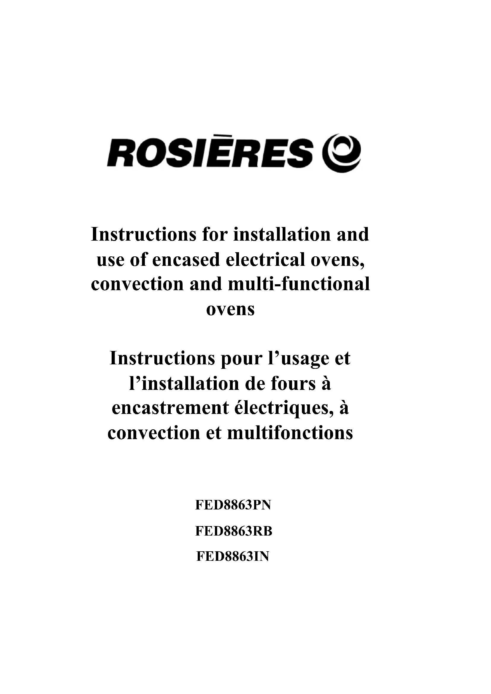 FED 8863 RB - Four ROSIERES - Notice d'utilisation et mode d'emploi gratuit