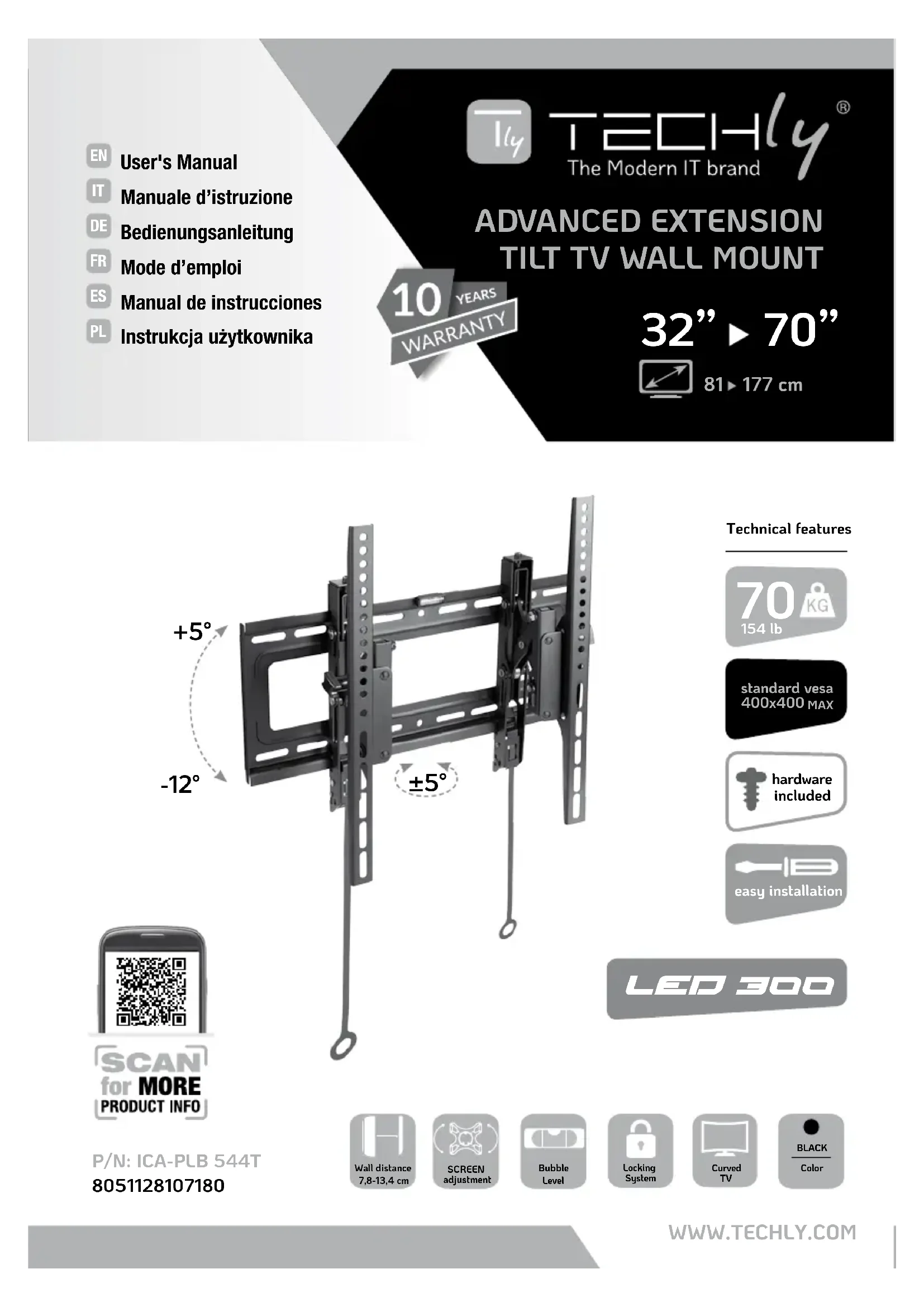 ICAPLB 544T - Support mural Techly - Notice d'utilisation et mode d'emploi gratuit