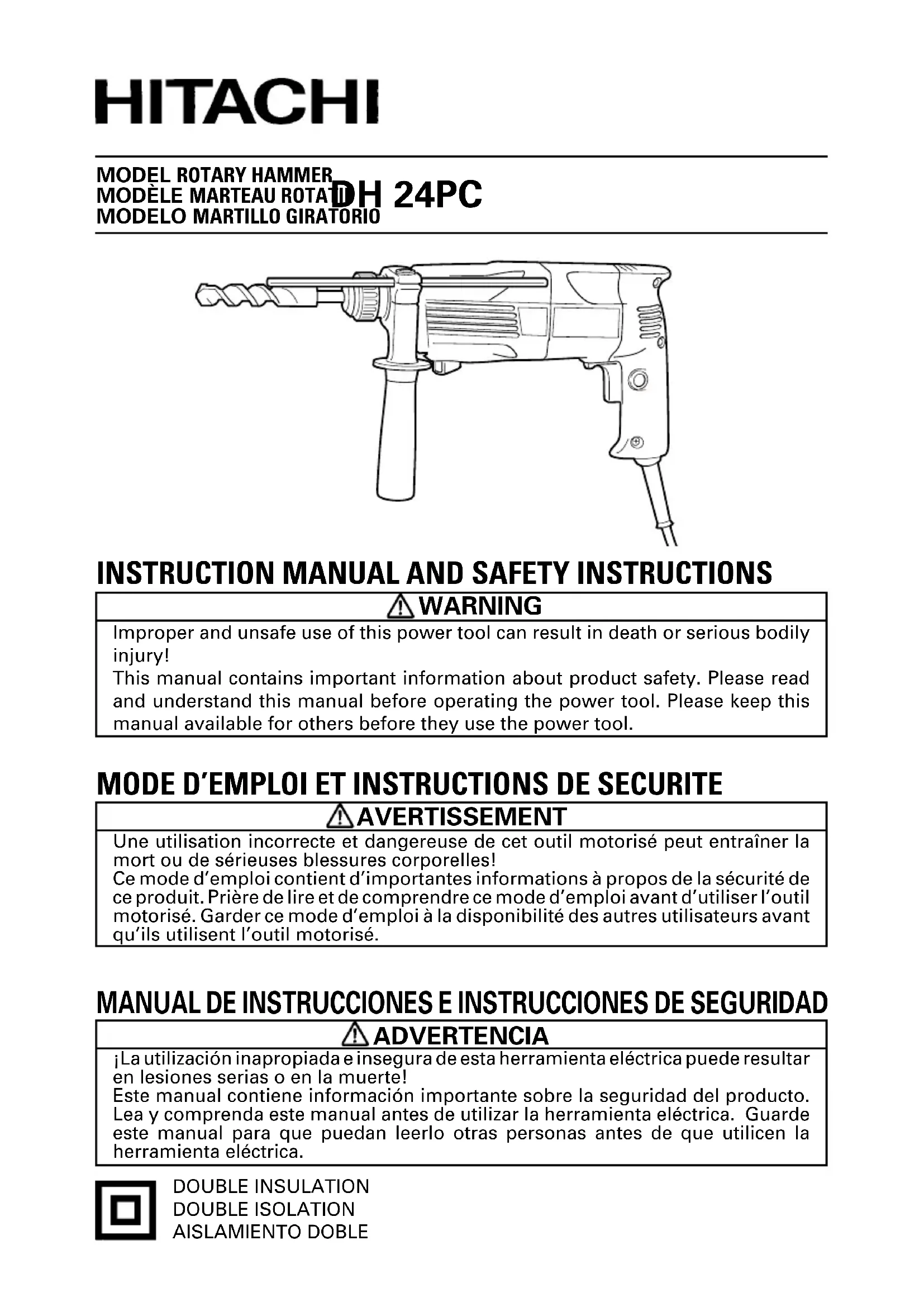 DH 24PC - Perceuse HITACHI - Notice d'utilisation et mode d'emploi gratuit