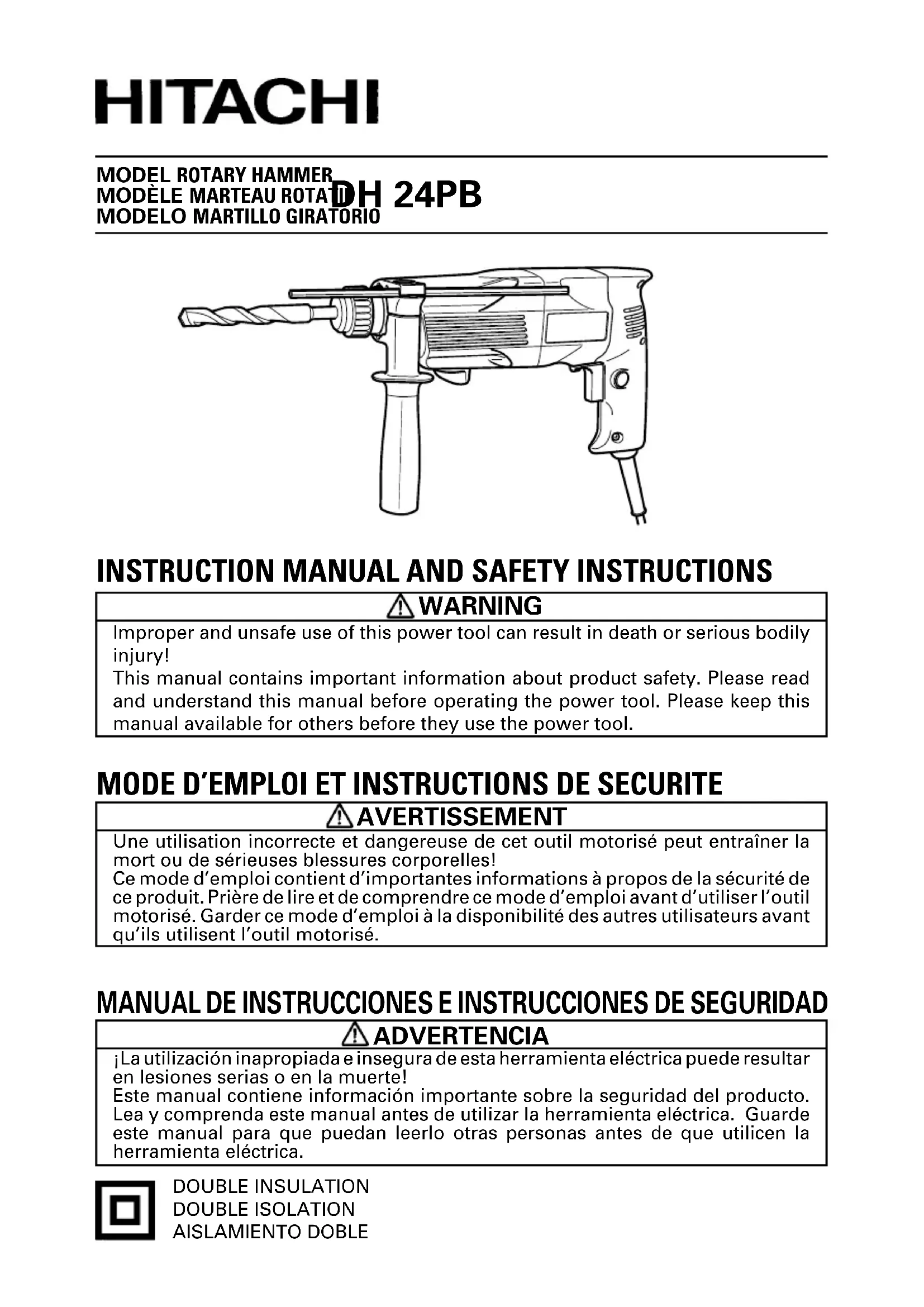 DH 24PB - Perceuse HITACHI - Notice d'utilisation et mode d'emploi gratuit