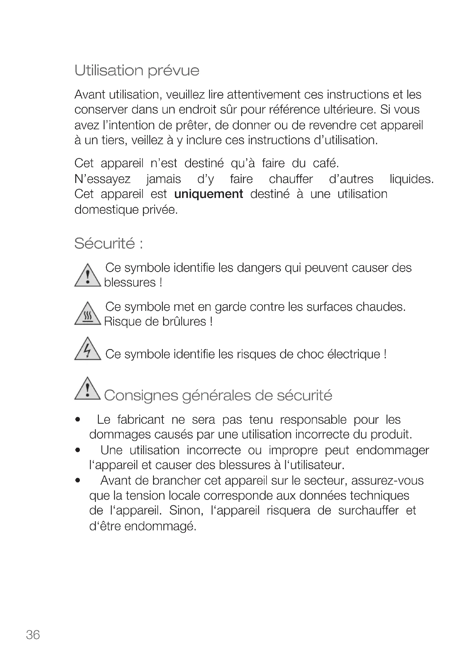 - Votrecafetièreestuniquementdestinéeàfaireducafé.
