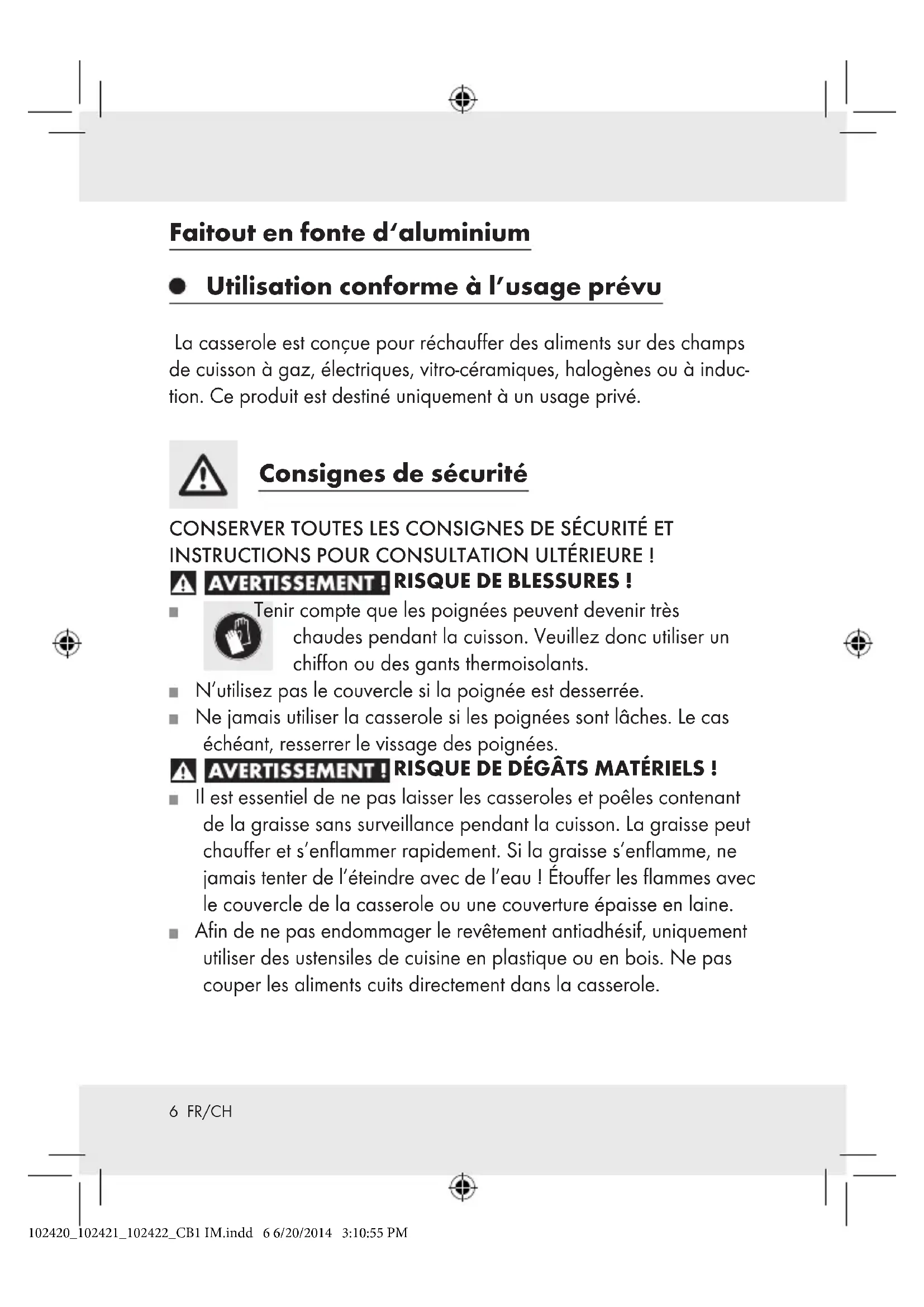 Les rayures peuvent apparaître avec le temps et l'utilisation. Cependant, si elles sont profondes ou si le revêtement est endommagé, il est préférable de ne pas l'utiliser.