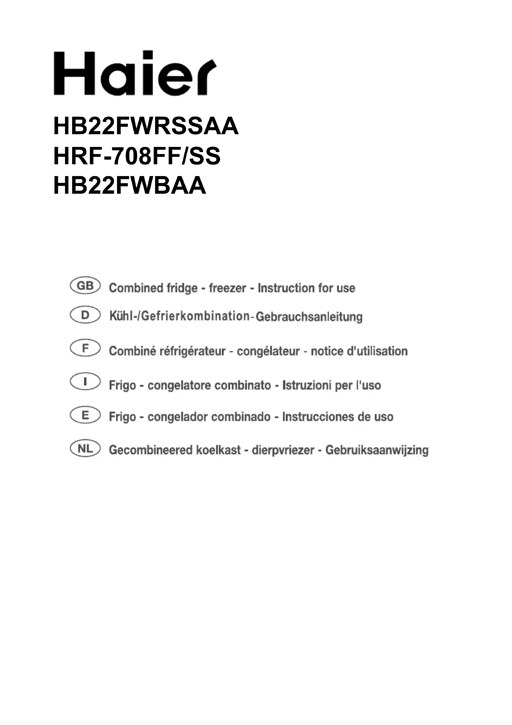 HB22FWBAA - Réfrigérateur HAIER - Notice d'utilisation et mode d'emploi gratuit