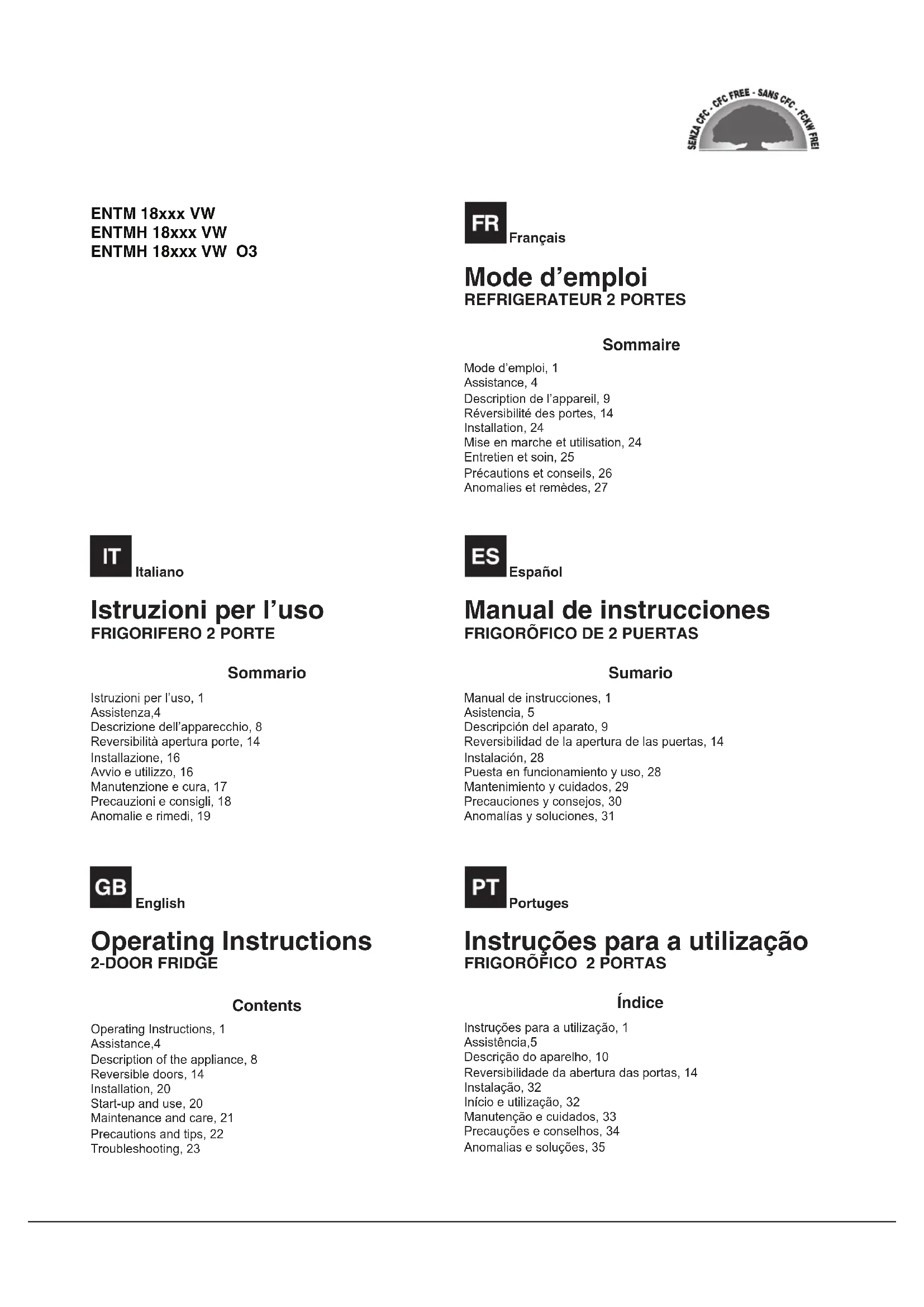 - lenumérodesérie(S/N) Voustrouvereztouscesrenseignementssurl’étiquette signalétiqueplacéedanslecompartimentréfrigérateurenbas àgauche. Ne vous adressez jamais à des techniciens non agréés et exigez toujours l’installation de pièces détachées originales. - modello - model - modèle - modelo - modelo - modelo - model - model - model - model