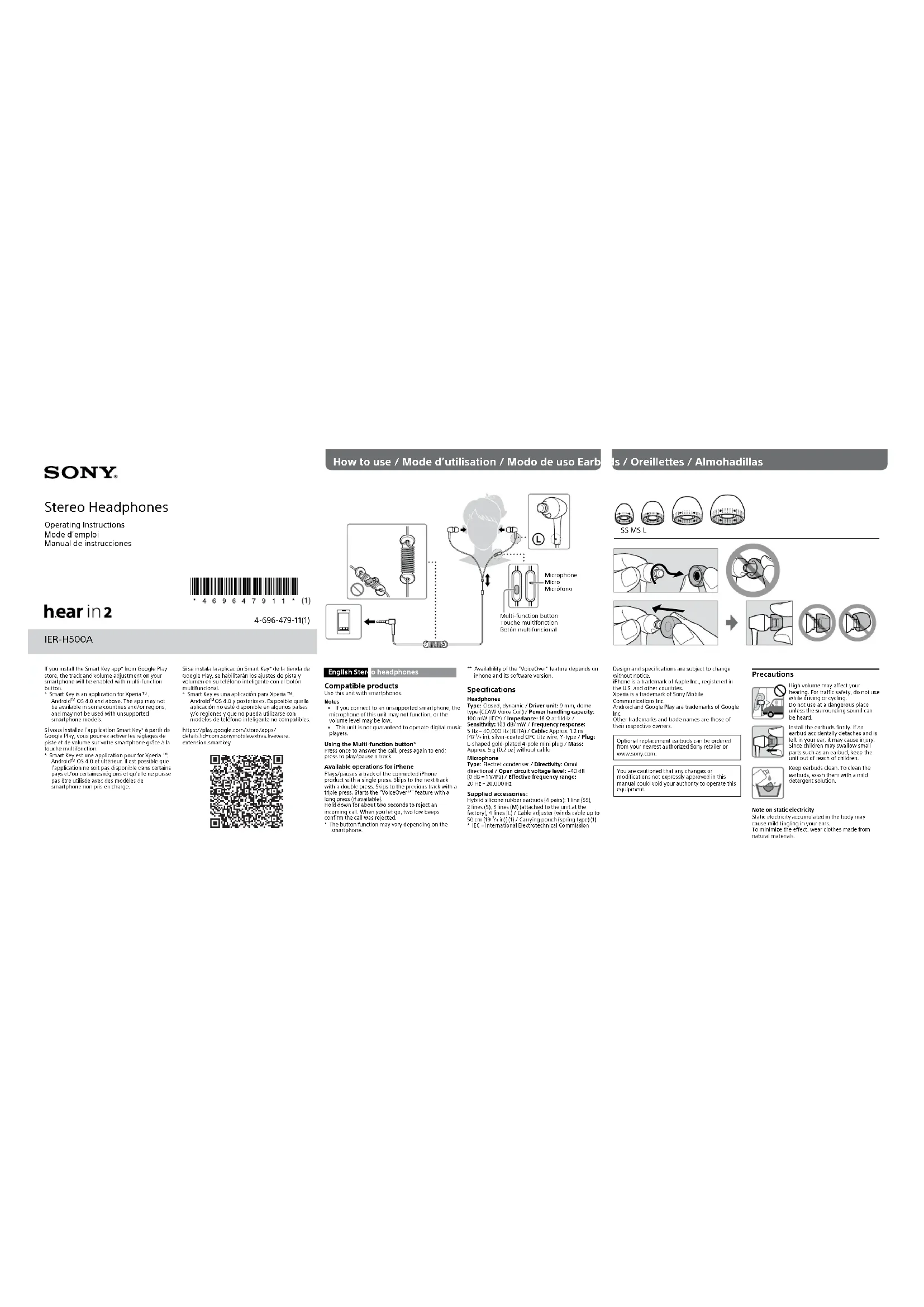 Téléchargez la notice de votre Ecouteur au format PDF gratuitement ! Retrouvez votre notice IERH500A - SONY et reprennez votre appareil électronique en main. Sur cette page sont publiés tous les documents nécessaires à l'utilisation de votre appareil IERH500A de la marque SONY.