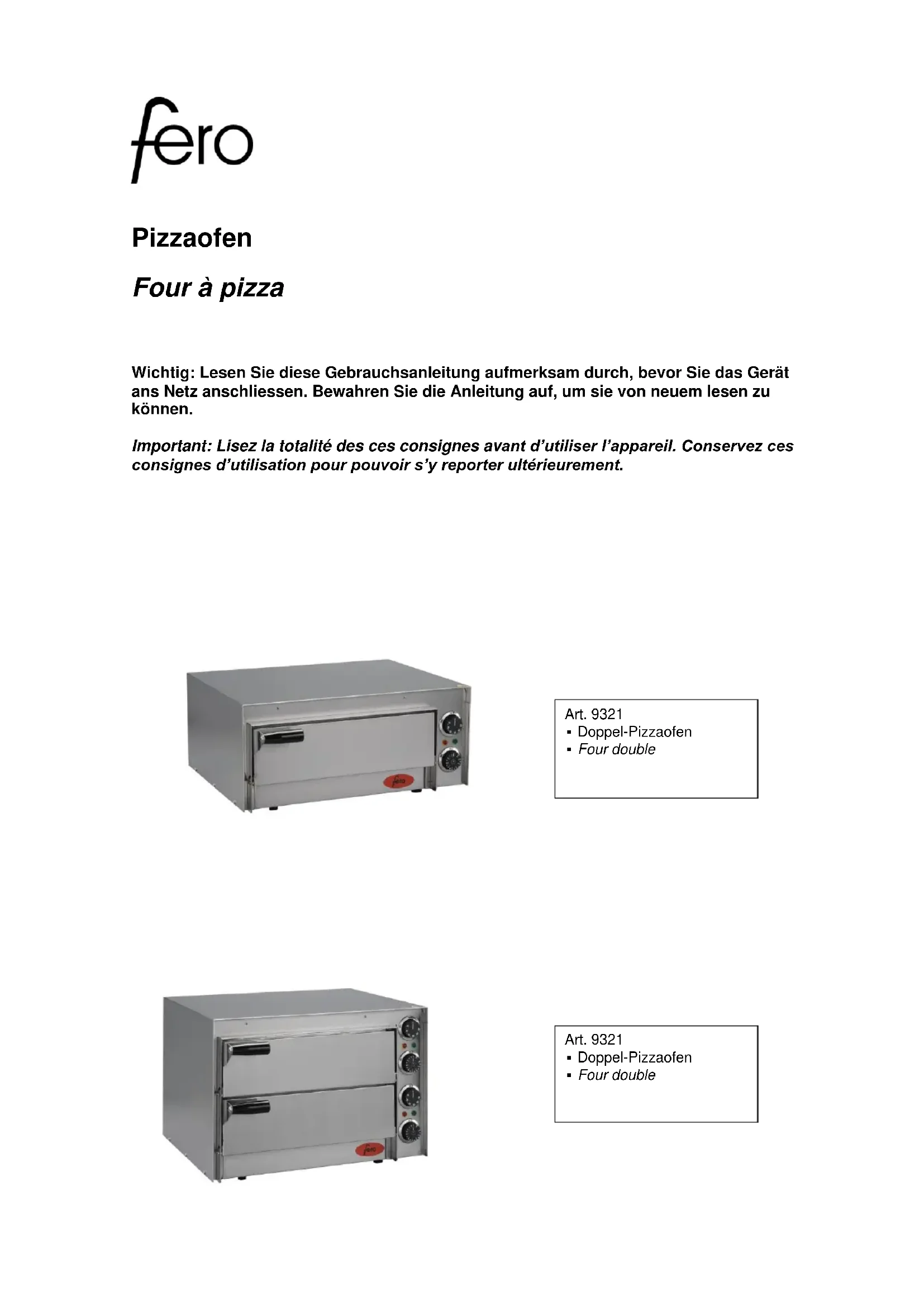 H9322 - Four Fero - Notice d'utilisation et mode d'emploi gratuit