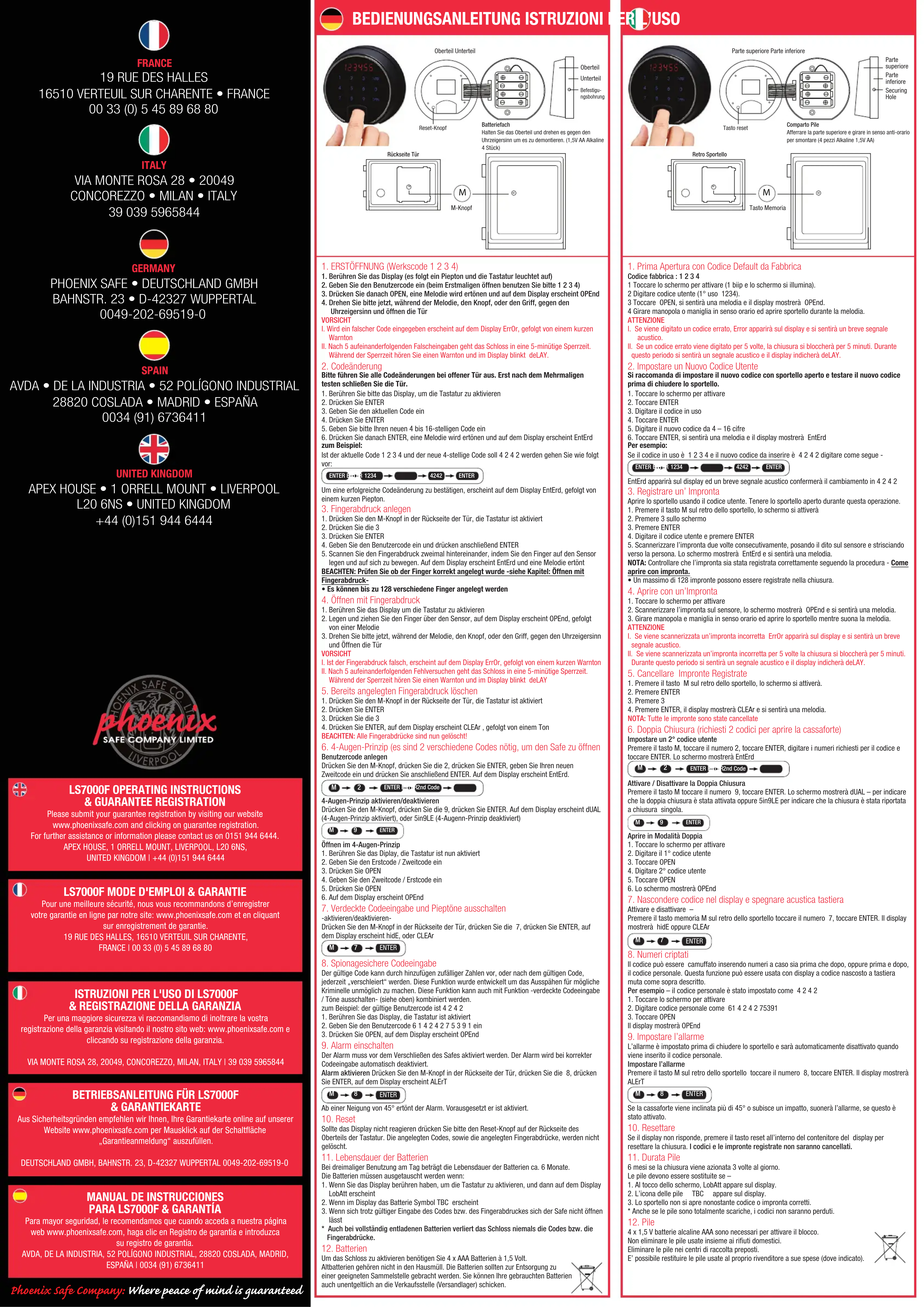 Pour une meilleure sécurité, nous vous recommandons d’enregistrer votre garantie en ligne par notre site: www.phoenixsafe.com et en cliquant sur enregistrement de garantie. 19 RUE DES HALLES, 16510 VERTEUIL SUR CHARENTE, FRANCE | 00 33 (0) 5 45 89 68 80