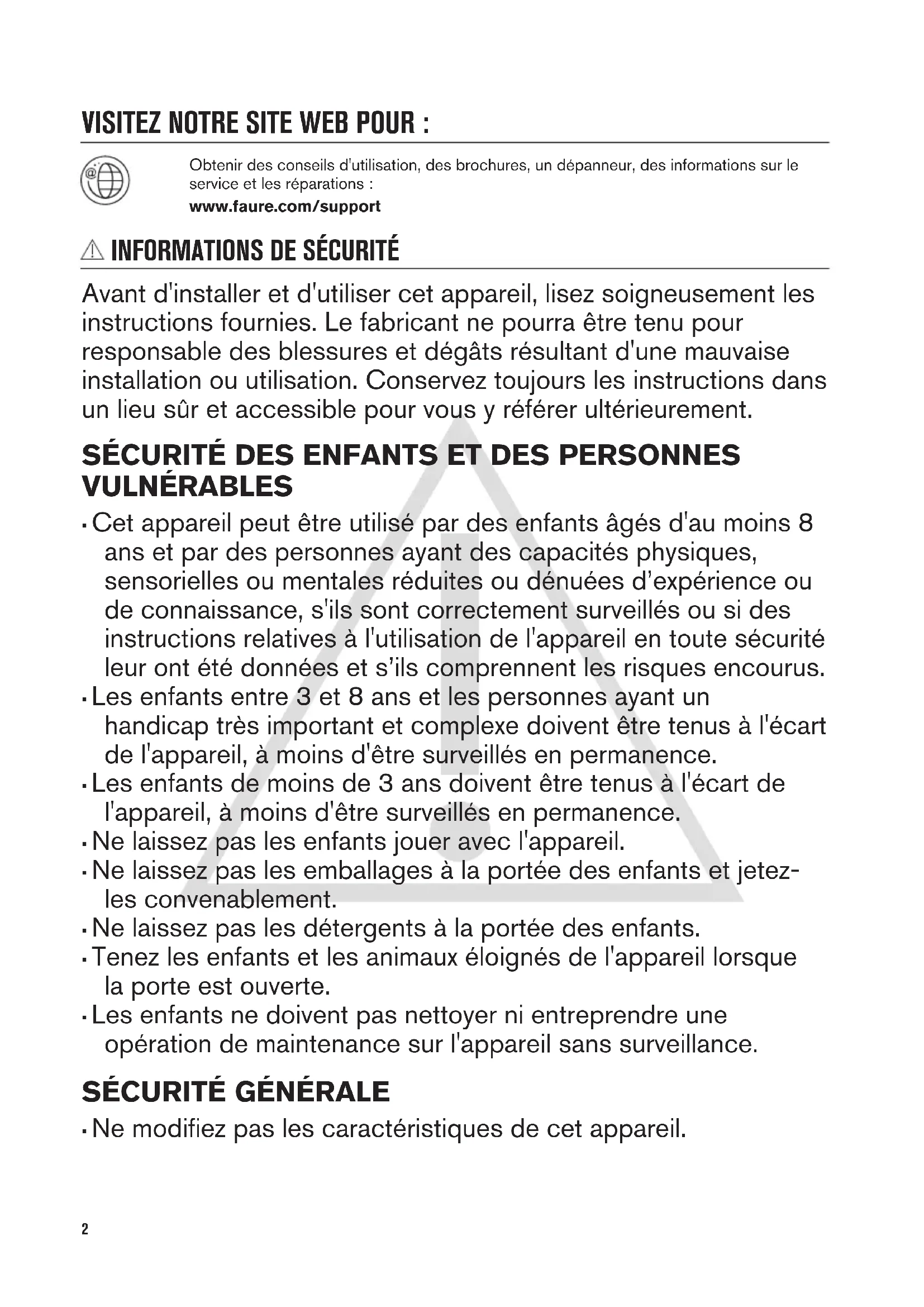 Retrouvez gratuitement la notice de l'appareil FWQ61228CR FAURE au format PDF.