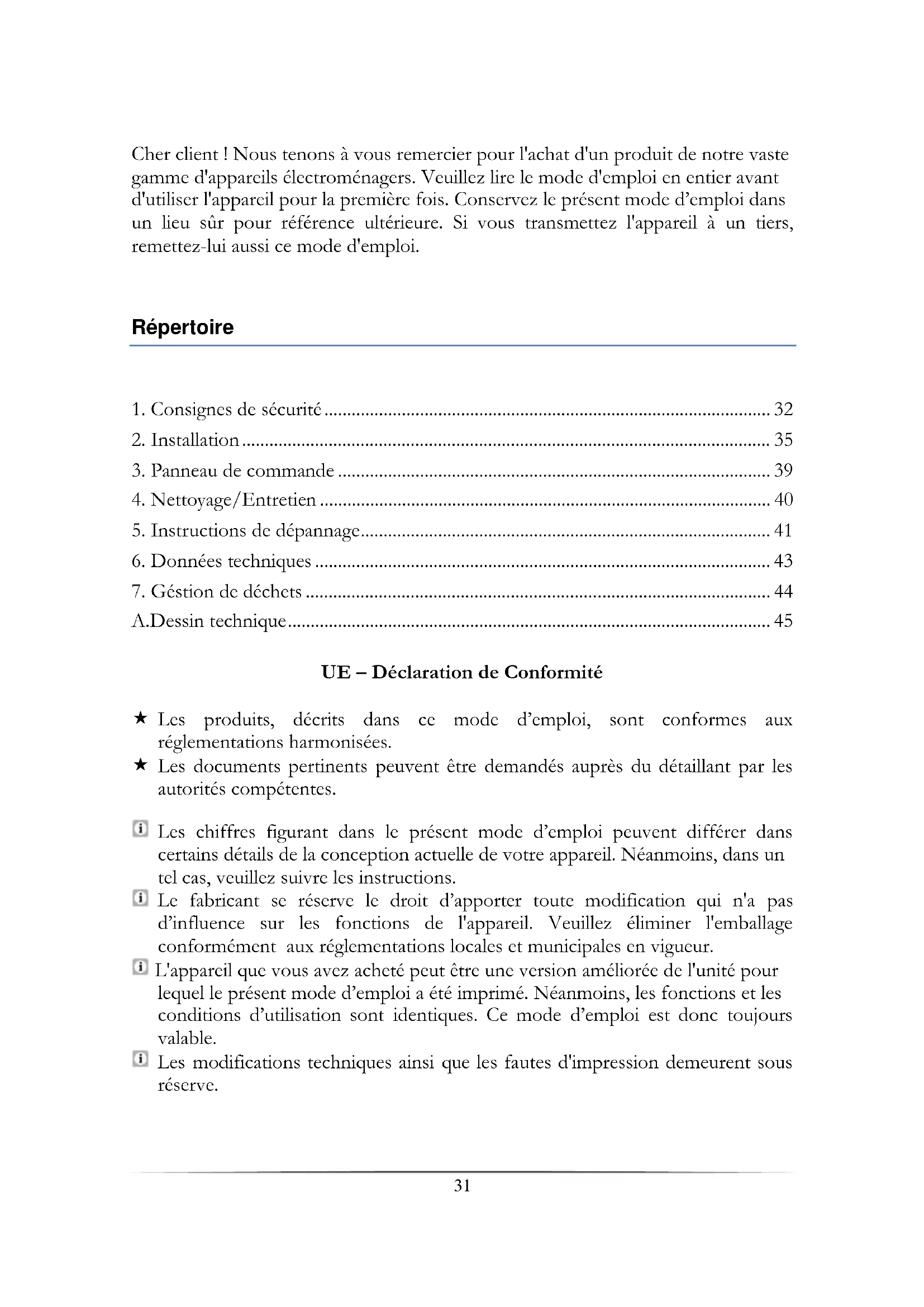 - Consignes de sécurité 32