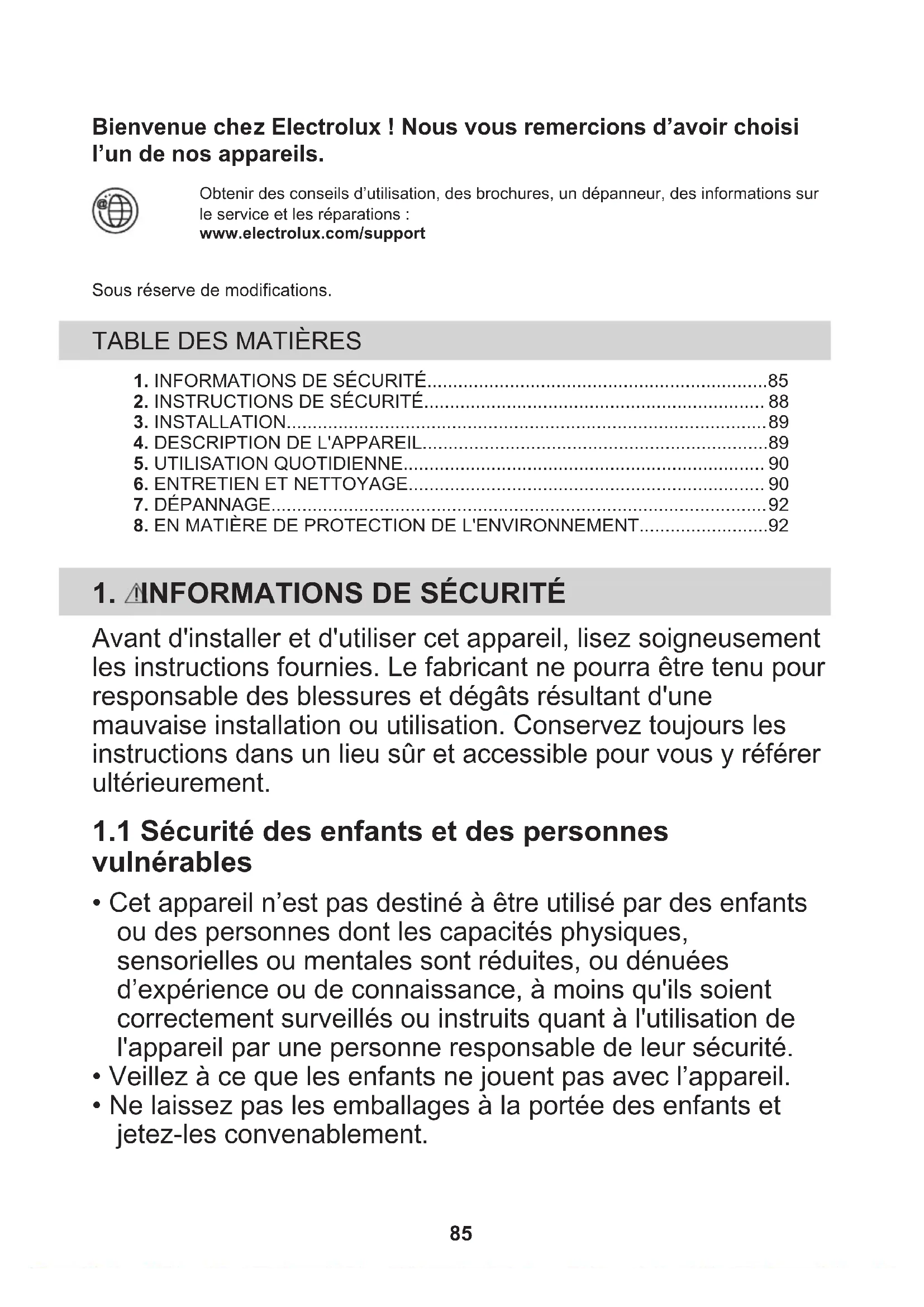 1.1 Sécurité des enfants et des personnes