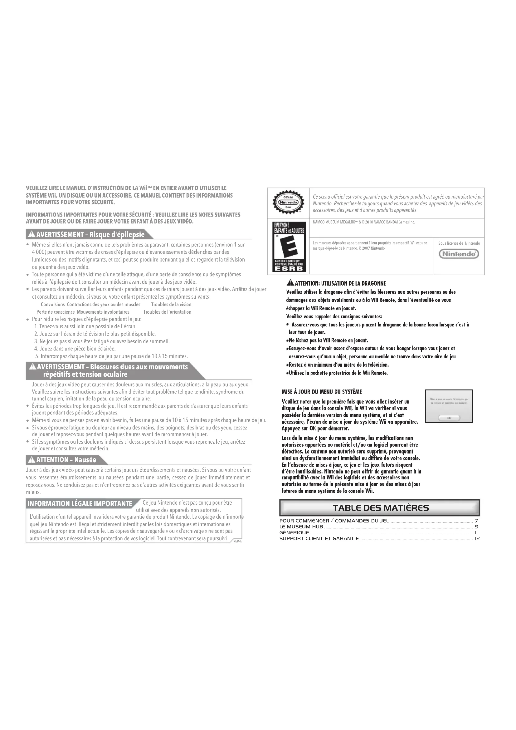 MODE D'EMPLOI Namco Museum Megamix (Wii) NINTENDO