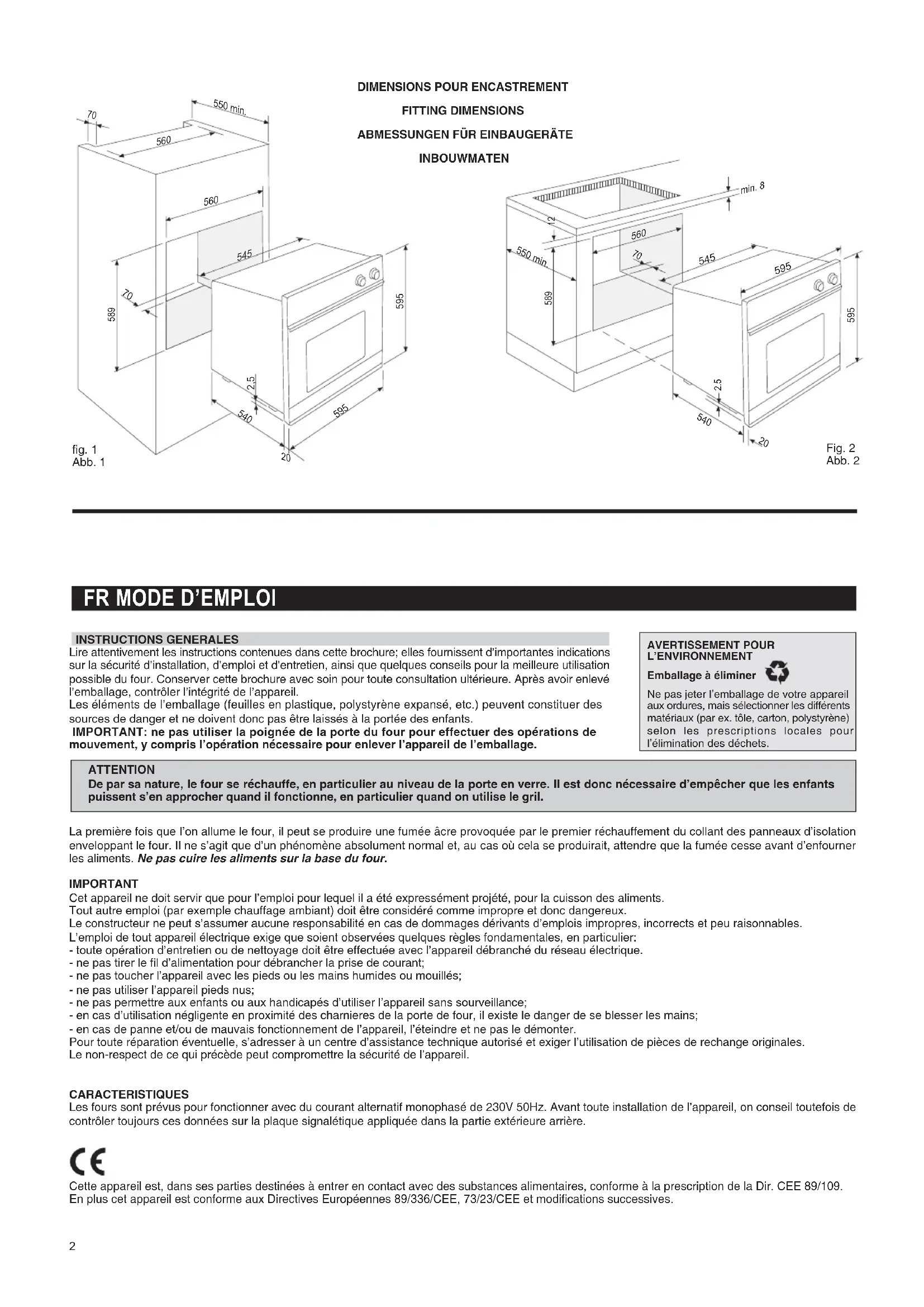 Pour permettre une meilleure aeration du meuble, les fours doivent etre encastrés conformement aux mesures et distances indiquees dans la figure 1-2 page 2.