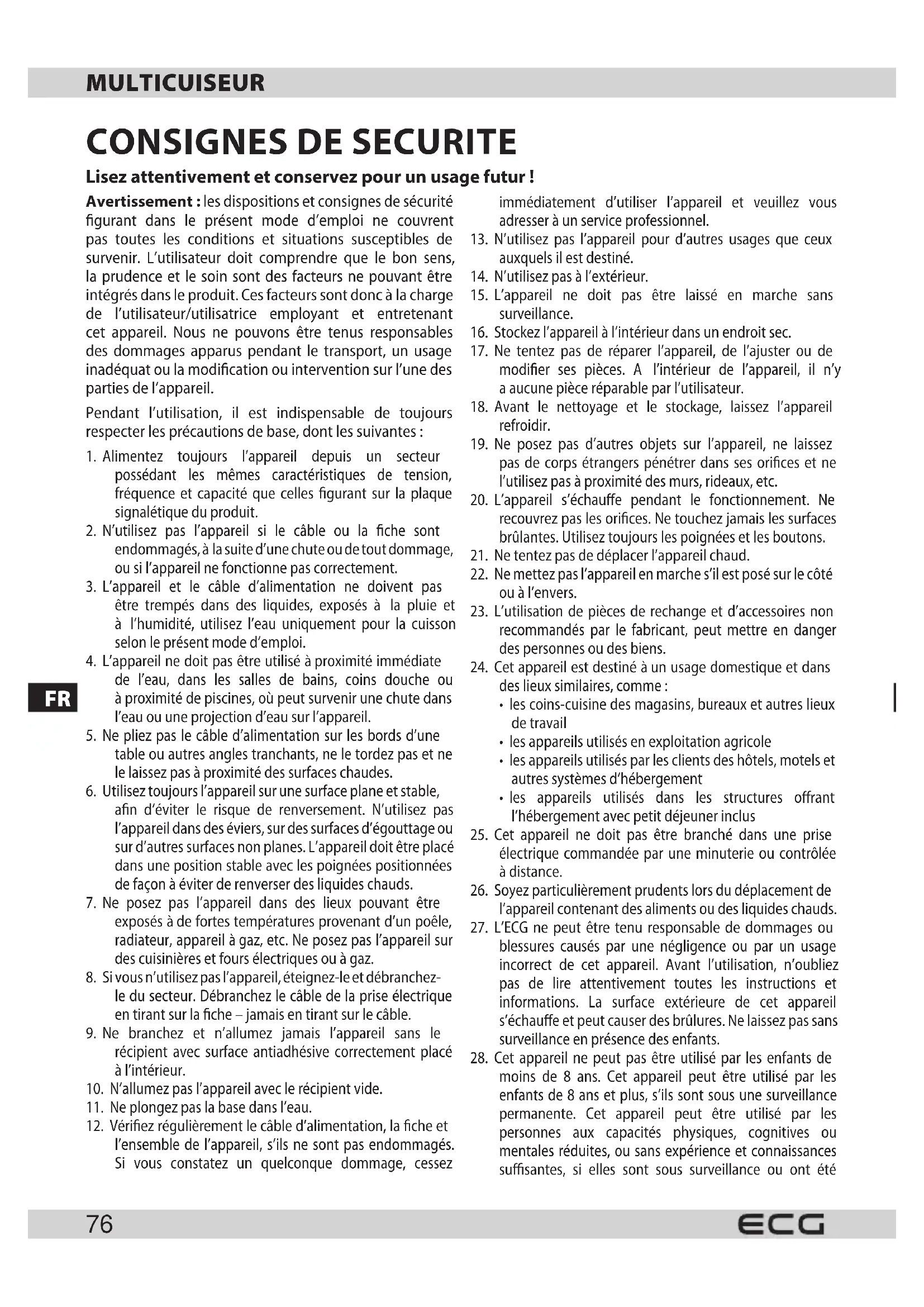 MH 910 Delizioso - Appareil multi-cuisson ECG - Notice d'utilisation et mode d'emploi gratuit