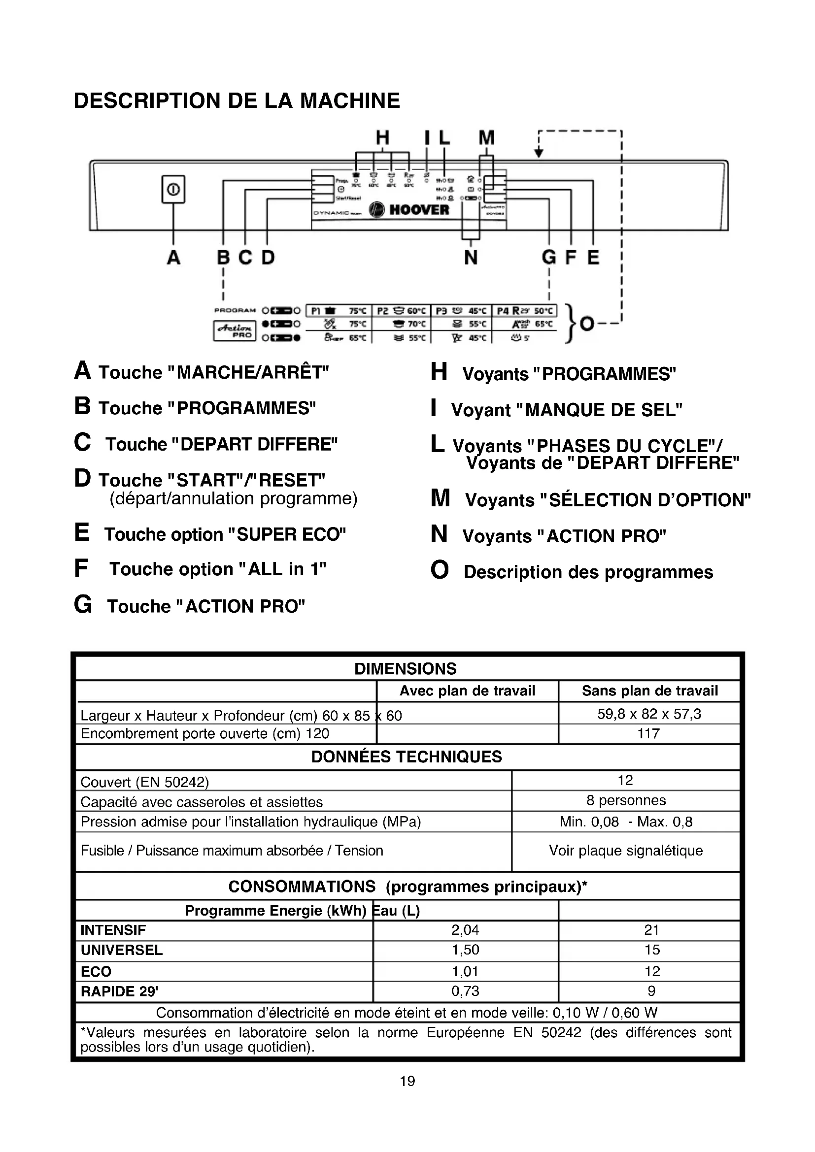 DDY 062X3 - Lave-vaisselle HOOVER - Notice d'utilisation et mode d'emploi gratuit