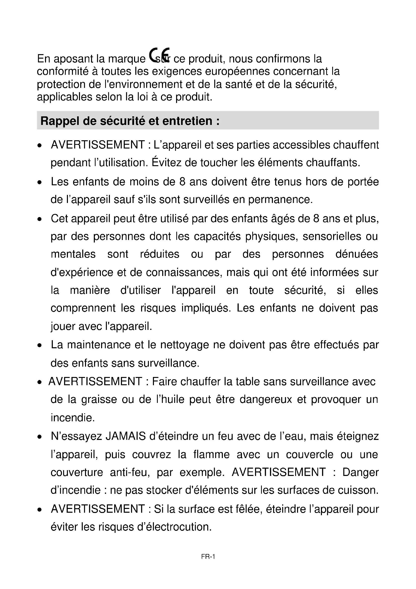 - AVERTISSEMENT : Si la surface est fêlée, éteindre l’appareil pour éviter les risques d’électrocution.FR-2