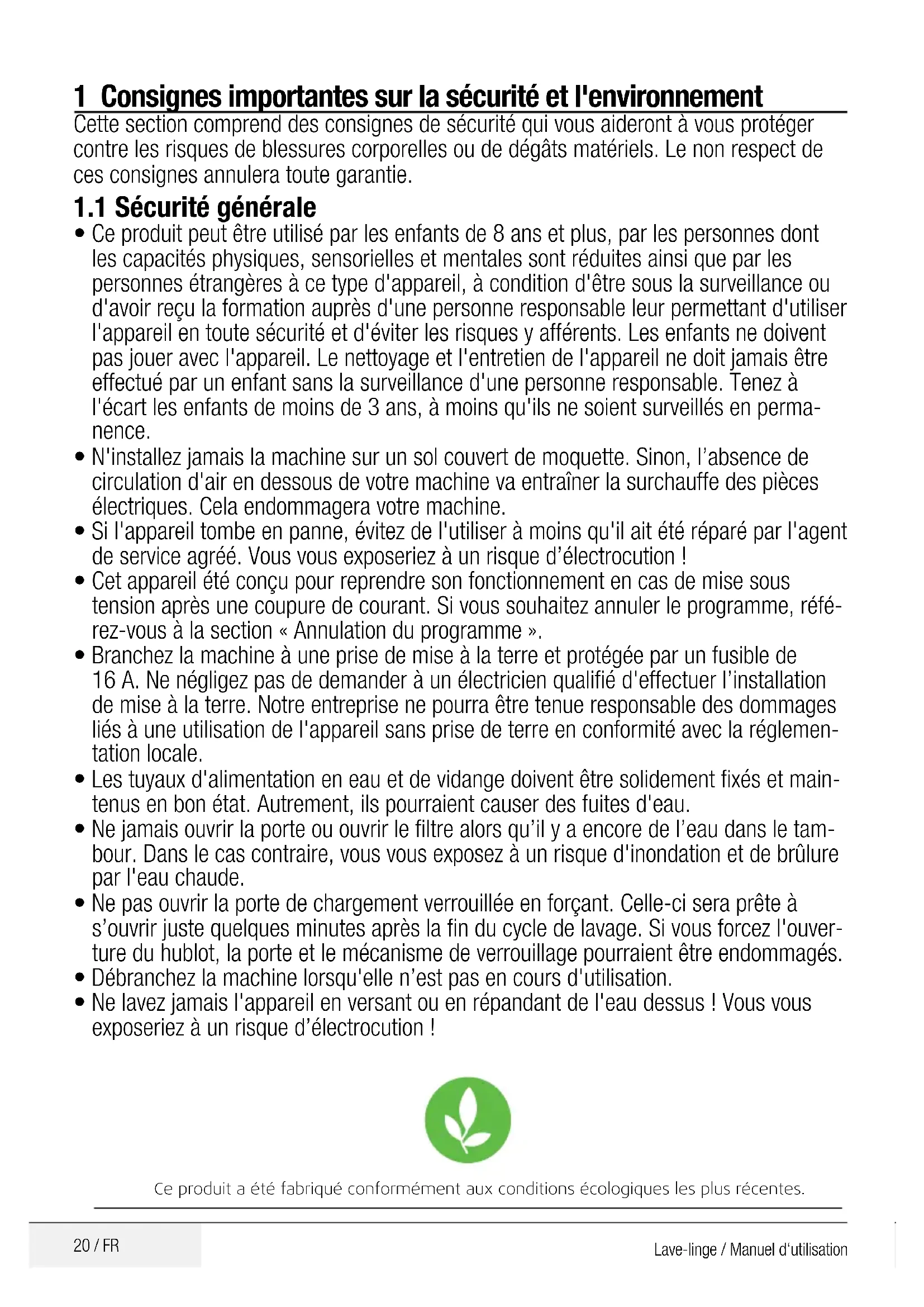 - Nelavezjamaisl'appareilenversantouenrépandantdel'eaudessus!Vousvous exposeriezàunrisqued’électrocution! Ce produit a été fabriqué conformément aux conditions écologiques les plus récentes.21 / FR Lave-linge / Manuel d‘utilisation