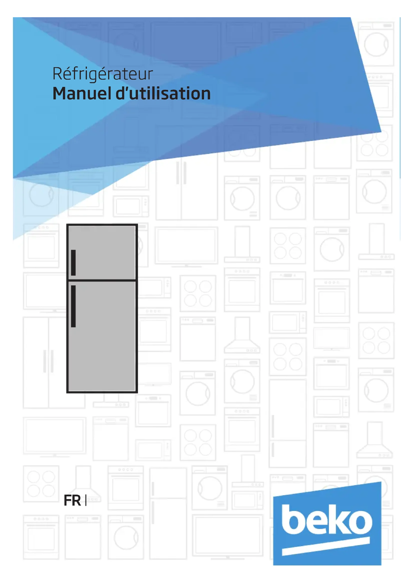 Réfrigérateur Manuel d'utilisationVeuillez commencer par lire ce manuel d’utilisation! Cher client, Nous espérons que votre produit, qui a été fabriqué dans des usines modernes et vérifié au terme des procédures de contrôle de qualité les plus méticuleuses, vous donnera entière satisfaction. Veuillez donc lire attentivement l'intégralité de ce manuel avant de commencer à utiliser le produit et conservez-le manuel comme référence. Si vous remettez cet appareil à quelqu'un d'autre, remettez-lui également le manuel d'utilisation. Ce manuel vous aidera à utiliser votre produit ent toute sécurité et efficacement.