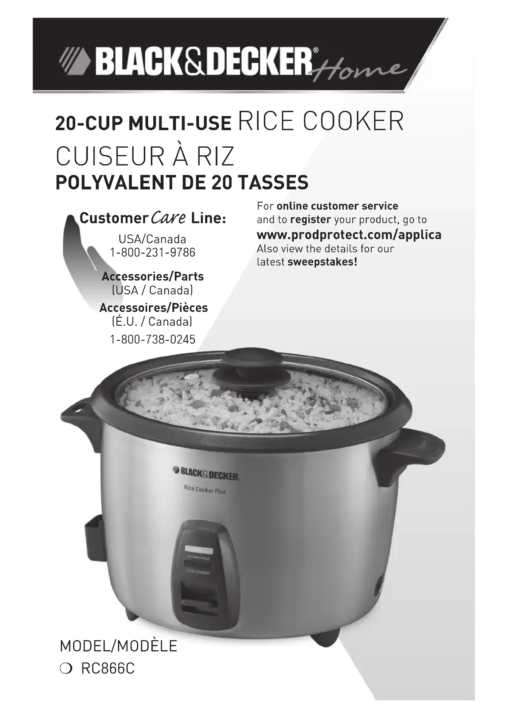 RC866C - Cuiseur à riz BLACK & DECKER - Notice d'utilisation et mode d'emploi gratuit