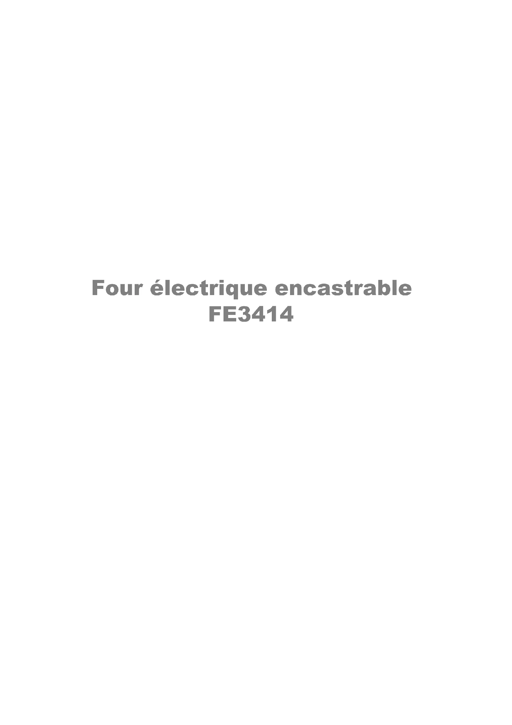 - Four électrique encastrable FE34142 Lors de sa fabrication, cet appareil a été construit selon des normes, direc- tives et/ou décrets pour une utilisation sur le territoire français. Pour la sécurité des biens et des personnes ainsi que pour le respect de l'environnement, vous devez d'abord lire impérativement les préco- nisations suivantes avant toute utilisation de votre appareil. 1 Pour éviter tout risque de détérioration de l’appareil, transportez-le dans sa position d’utilisation muni de ses cales de transport (selon modèle). Au déballage de celui-ci, et pour empêcher des risques d’asphyxie et cor- porel, tenez les matériaux d’emballage hors de la portée des enfants. 1 Pour éviter tout risque (mobilier, immobilier, corporel, ), l’installation, les raccordements (eau, gaz, électricité, évacuation selon modèle), la mise en service et la maintenance de votre appareil doivent être effectués par un professionel qualifié. 1 Votre appareil a été conçu pour être utilisé par des adultes. Il est destiné à un usage domestique. Ne l’utilisez pas à des fins commerciales ou indus- trielles ou pour d’autres buts que ceux pour lesquels il a été conçu. Vous éviterez ainsi des risques matérial et corporel. 1 Débranchez la prise de votre appareil (si elle existe) ou coupez le disjoncteur avant toute opération de nettoyage manuel. N’utilisez que des produits du commerce non corrosifs et/ou non inflammables. Utilisez un chiffon ou une éponge humidifié. Un nettoyage à l’eau ou à la vapeur risque de provoquer des infiltration nuisibles au bon fonctionnement du produit et des domma- ges corporels. 1 Si votre appareil et équipé d’un éclairage, il est obligatoire de débrancher la prise de votre appareil (si elle existe) ou coupez le disjoncteur avant de pro- céder au changement de l’éclairage (ampoule, néon, etc.) pour éviter tout choc électrique ou électrocution. 1 Afin d’empêcher des risques d’explosion et d’incendie, ne placez pas de produits inflammables ou d’éléments imbibés de produits inflammables à l’intérieur ou à proximité de l’appareil. 1 Lors de la mise au rebut de votre appareil, et pour écarter tout risque corpo- rel, mettez hors d’usage ce qui pourrait présenter un danger, par exemple : coupez le câble d’alimentation électrique au ras de l’appareil, cassez le dis- positif de verrouillage, s’ils existent. Informez-vous auprés des services de votre commune des entroits autorisés pour la mise au rebut de l’appareil. 1 Pendant et après le fonctionnement de l’appareil : – Les côtés et la façade de l’appareil sont chauds, – les récipients et leur contenu peuvent basculer,3 – lorsque la porte du four est ouverte, les parois internes des porte et d’enceinte sont chaudes. Veuillez tenir compte de ces informations et éloigner les enfants pen- dant et après l’utilisation de votre appareil pour éviter tout risque matérial et corporel. Avertissement spécifique pour les fours à nettoyage pyro- lytique 1 L’opération de nettoyage pyrolyse doit être effectuée en votre présence. Veillez au bon entretien de l’appareil et à son bon fonctionnement. Ne coupez pas l’alimentation du four et ne tentez pas d’ouvrir la porte. Le non respect de ces avertissements peut provoquer des dommages cor- porels et/ou matériels (incendie,