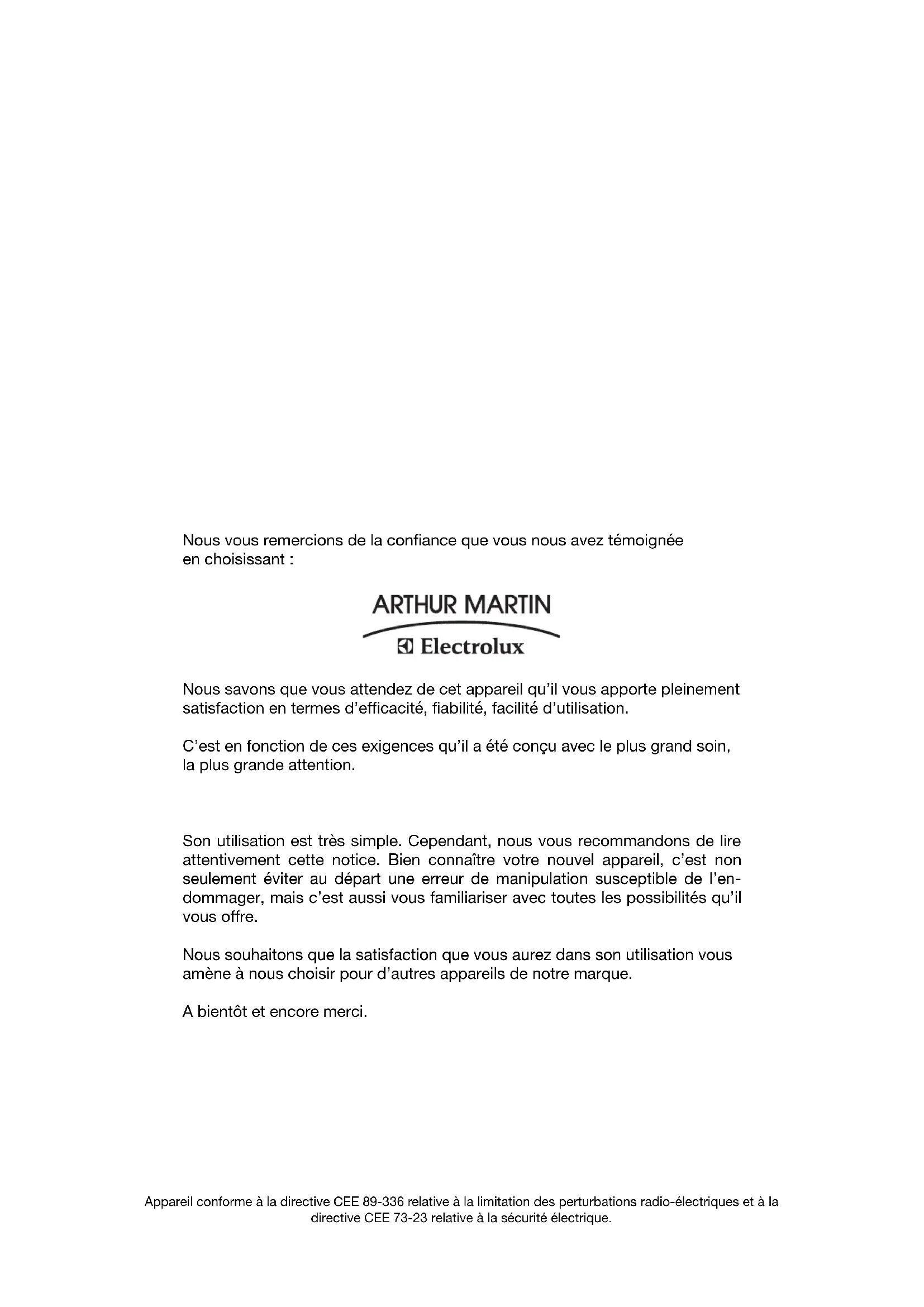 - Service 1 Consignes de sécurité La sécurité des appareils électroménagers ARTHUR MARTIN ELECTROLUX est conforme aux Règles reconnues de la technique et à la législation portant sur la sécurité des appareils. En tant que fabricant, nous attirons cependant votre attention sur les indica- tions supplémentaires suivantes: Installation, raccordement, mise en service p. 436