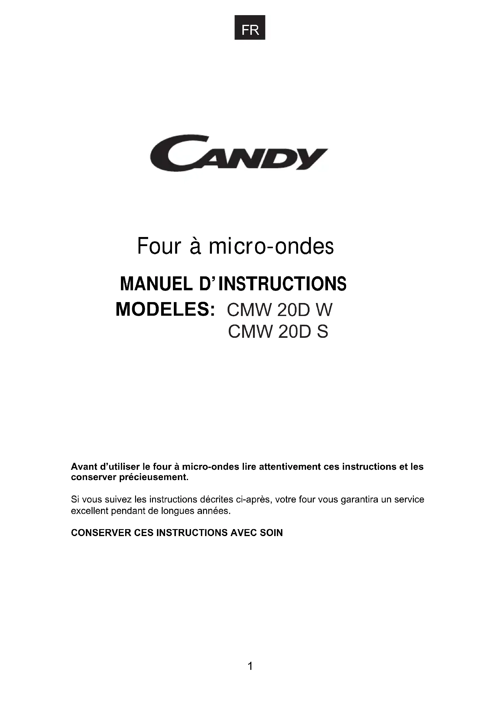 Avant d’utiliser le four à micro-ondes lire attentivement ces instructions et les conserver précieusement. Si vous suivez les instructions décrites ci-après, votre four vous garantira un service excellent pendant de longues années.CONSERVER CES INSTRUCTIONS AVEC SOIN