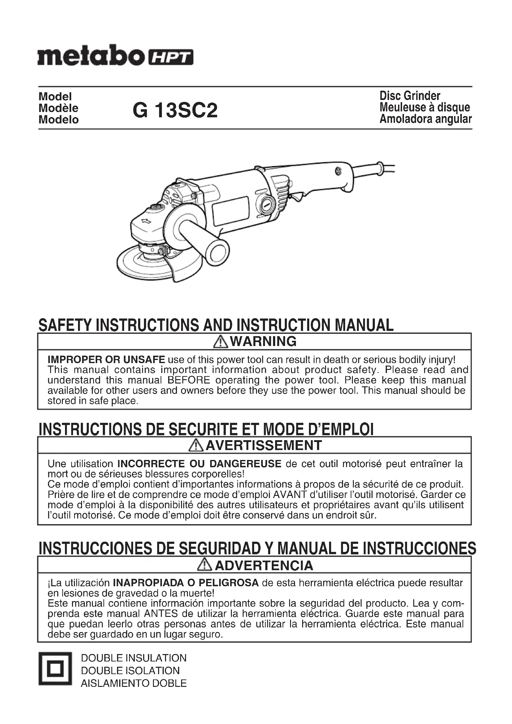 Retrouvez gratuitement la notice de l'appareil G 13SC2 METABO au format PDF.