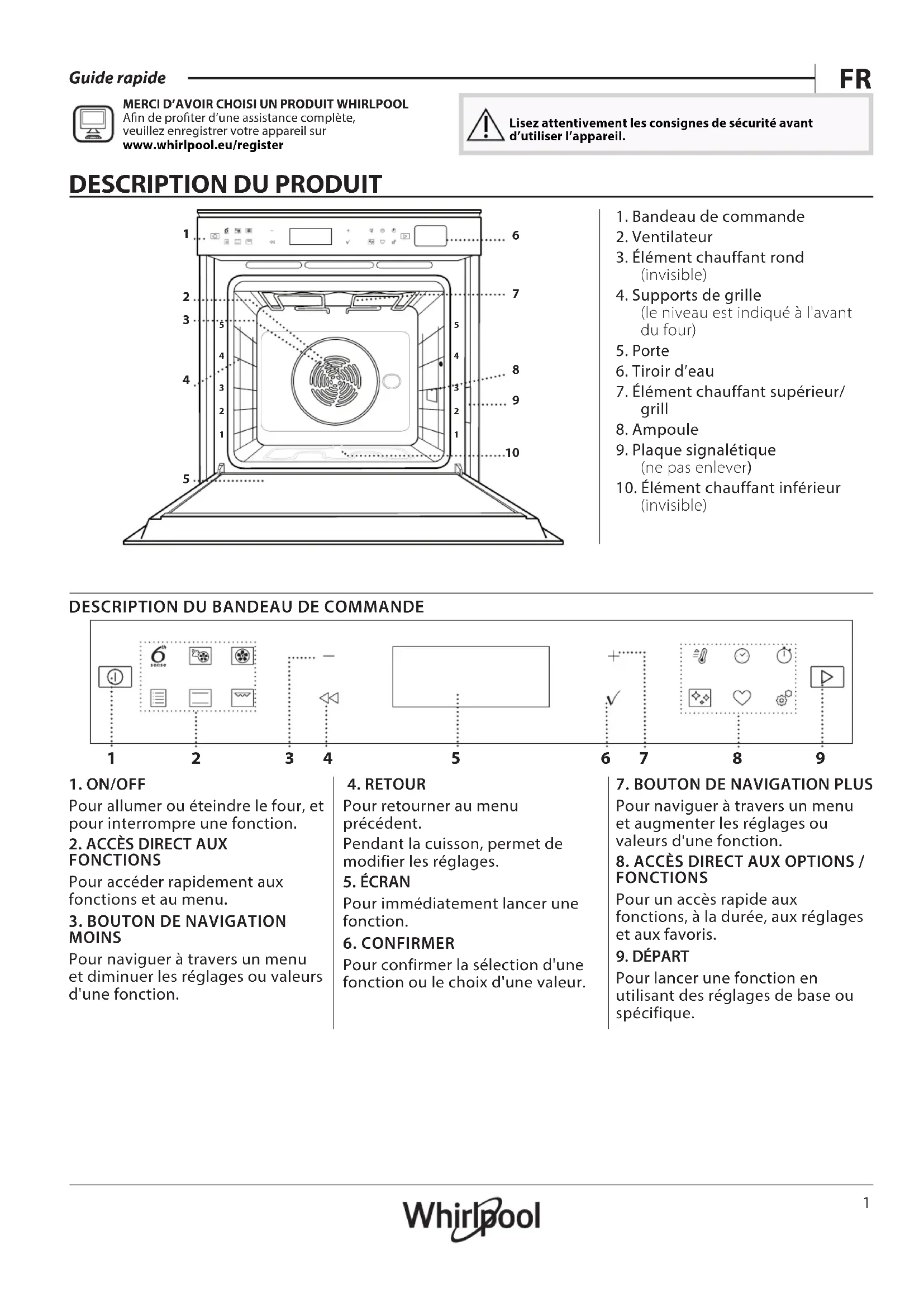 MERCI D’AVOIR CHOISI UN PRODUIT WHIRLPOOL An de proter d’une assistance complète, veuillez enregistrer votre appareil sur www . whirlpool . eu/ register Lisez attentivement les consignes de sécurité avant d’utiliser l’appareil.