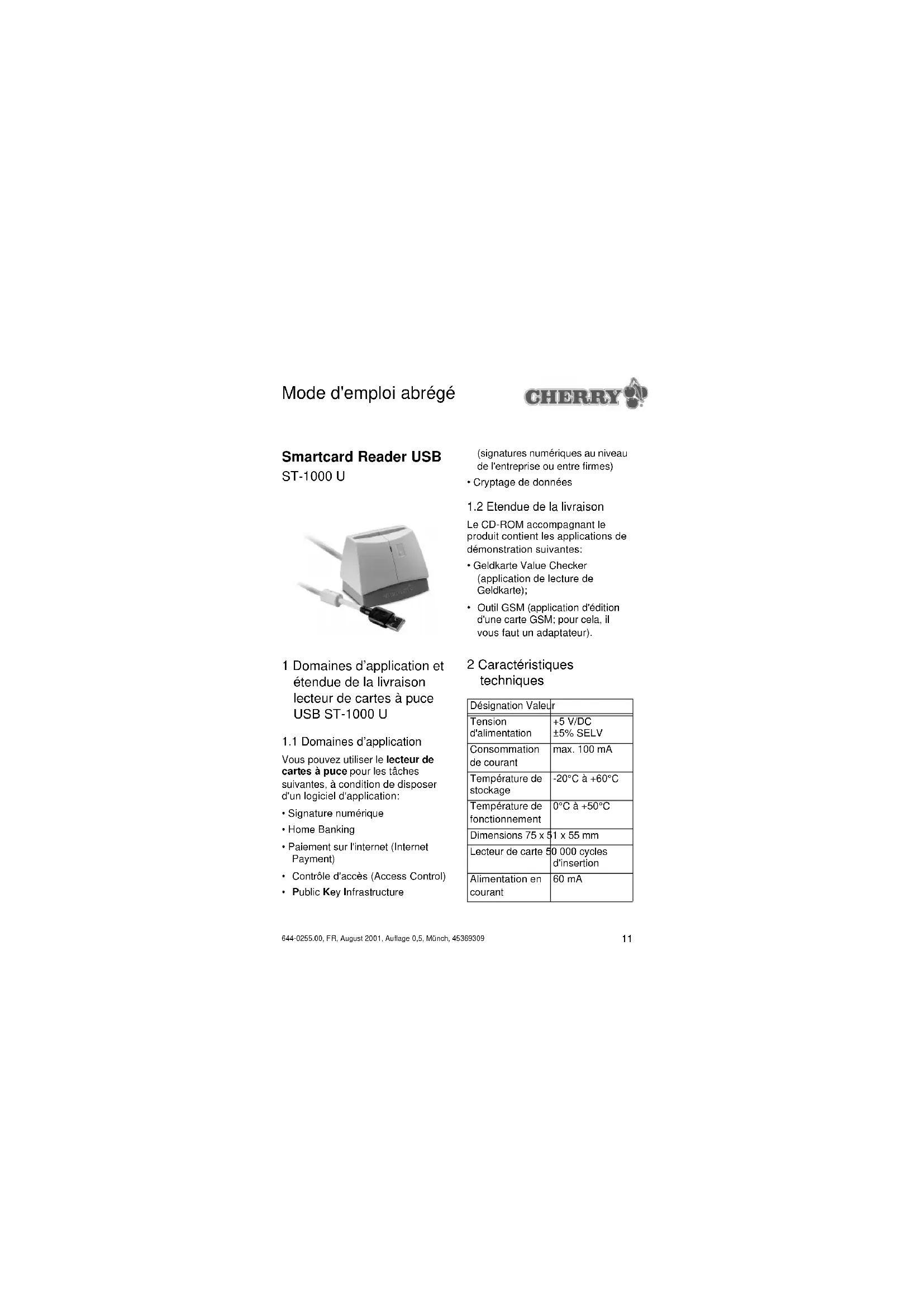 ST1000 U - Lecteur de mémoire Cherry - Notice d'utilisation et mode d'emploi gratuit