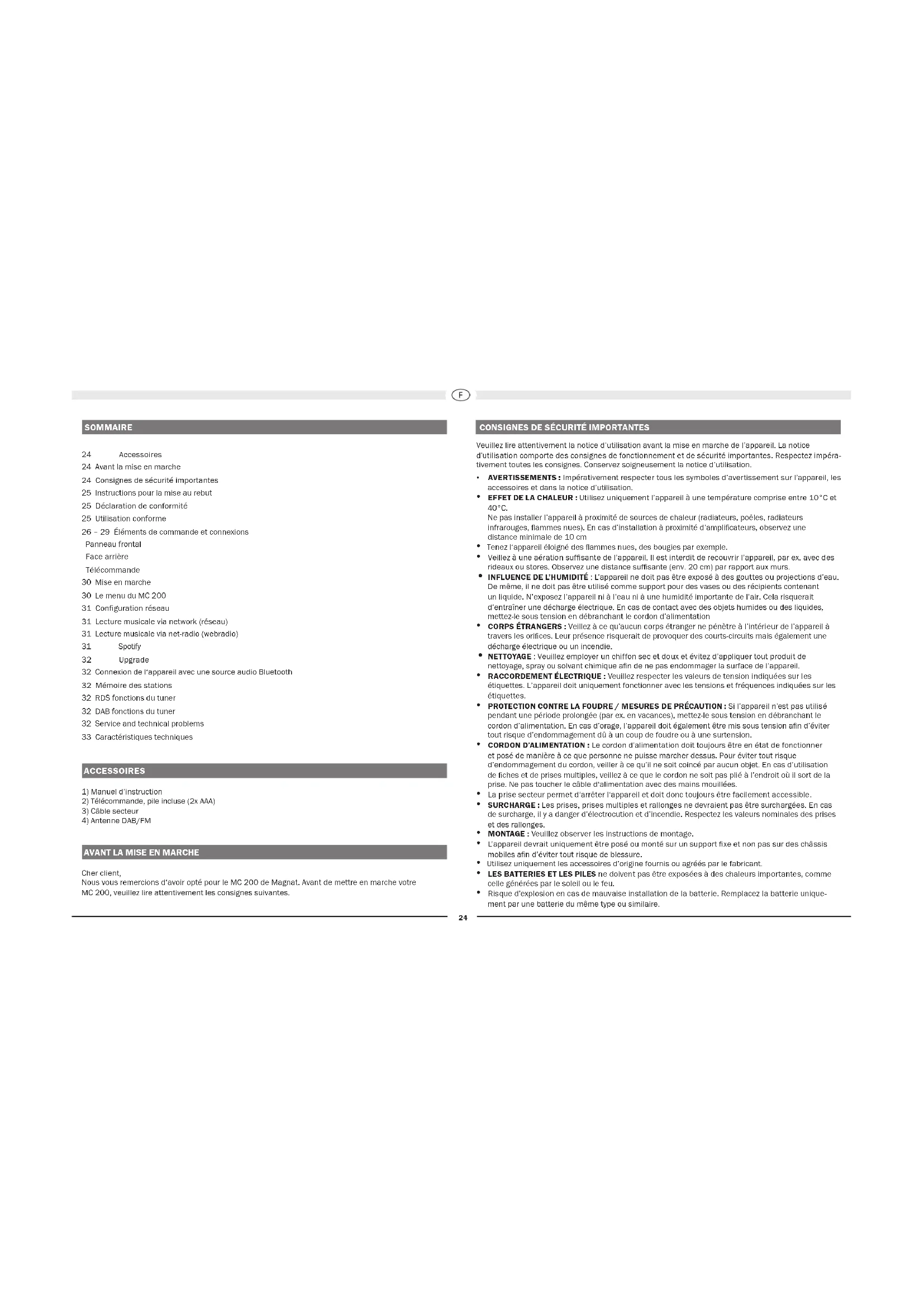 Cher client, Nous vous remercions d‘avoir opté pour le MC 200 de Magnat. Avant de mettre en marche votre MC 200, veuillez lire attentivement les consignes suivantes.