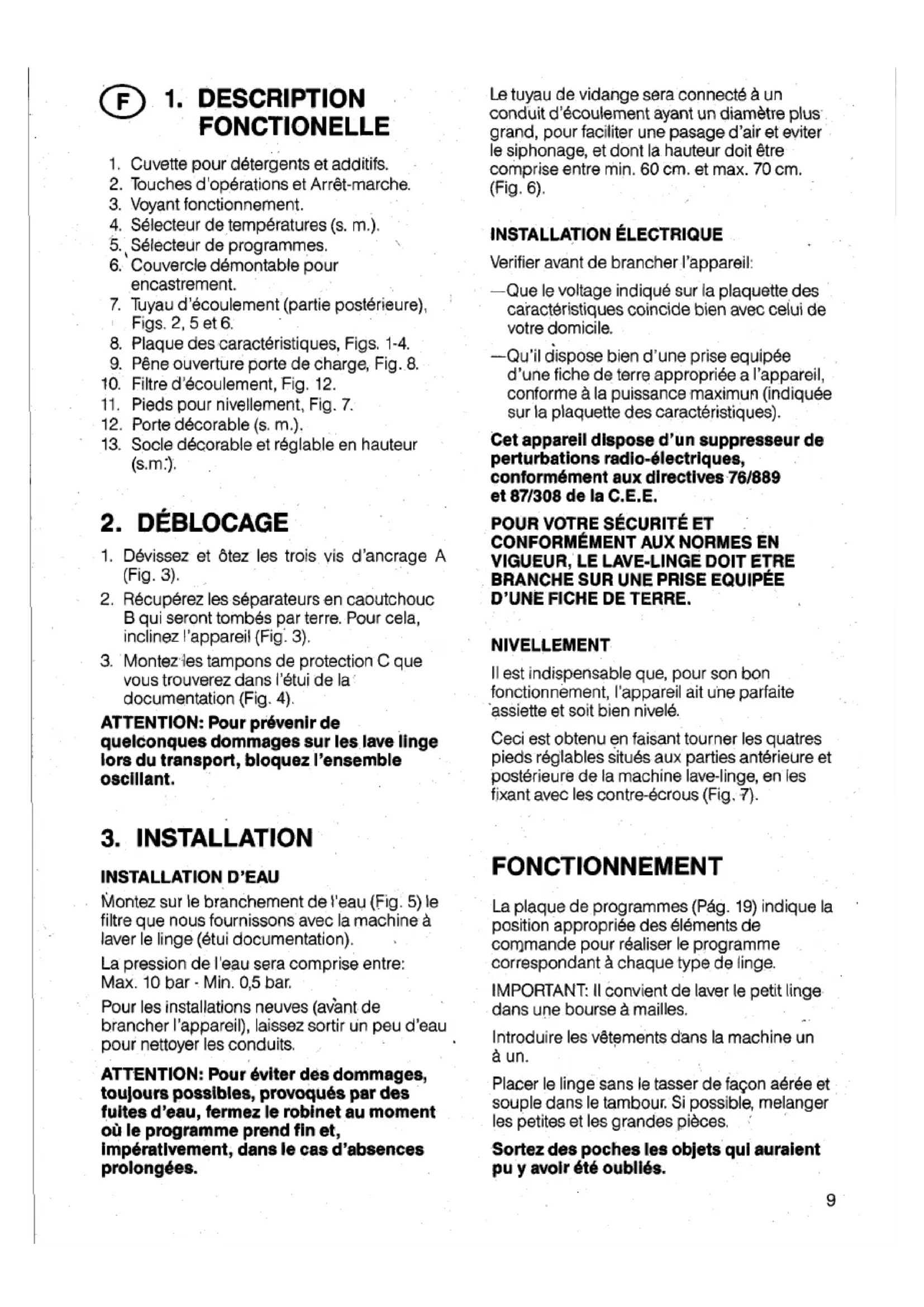 vous trouverez dans l’étui de la documentation (Fig. 4). ATTENTION: Pour prévenir de quelconques dommages sur les lave linge lors du transport, bloquez l’ensemble oscillant.