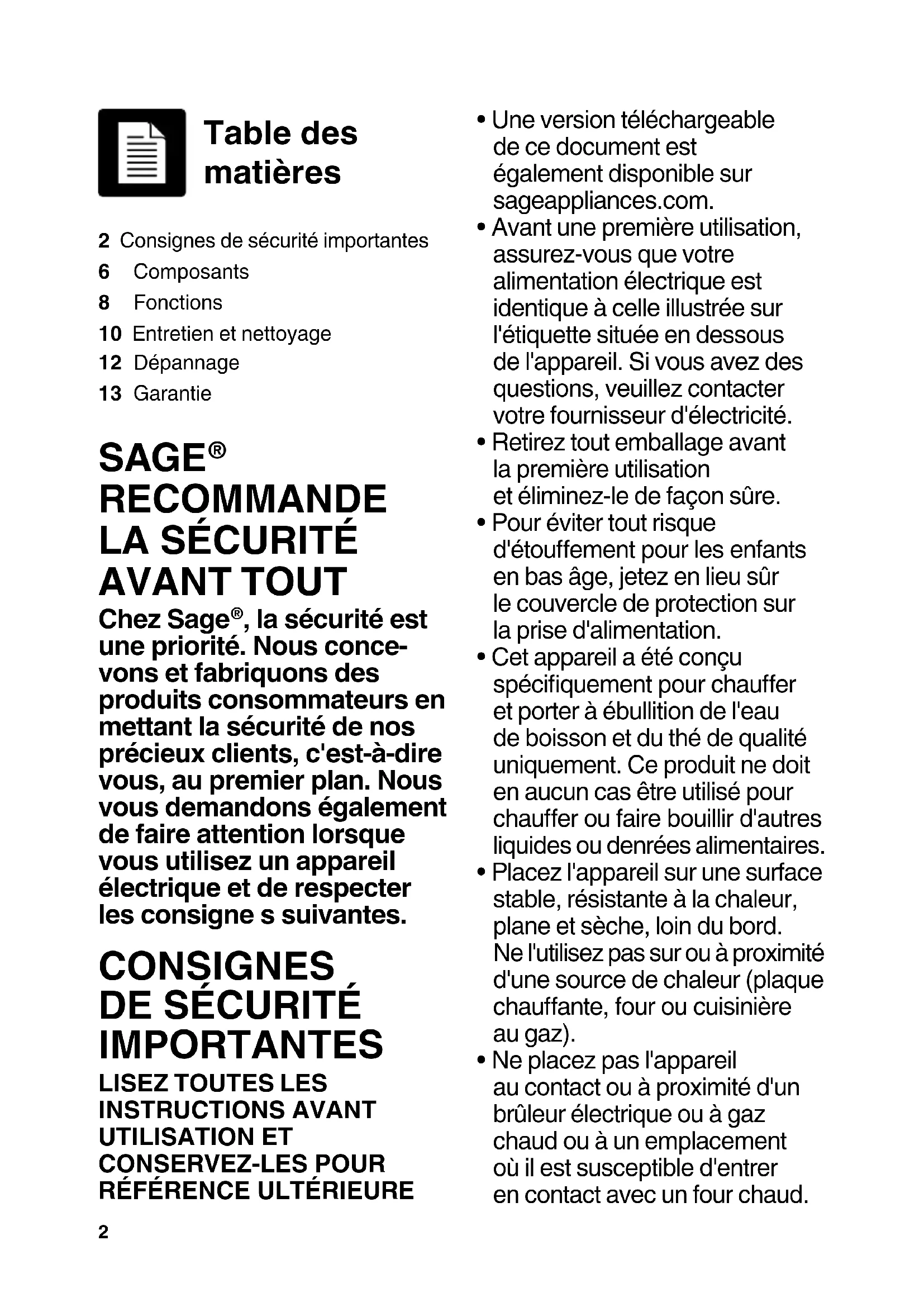 - Une version téléchargeable de ce document est également disponible sur sageappliances.com.
