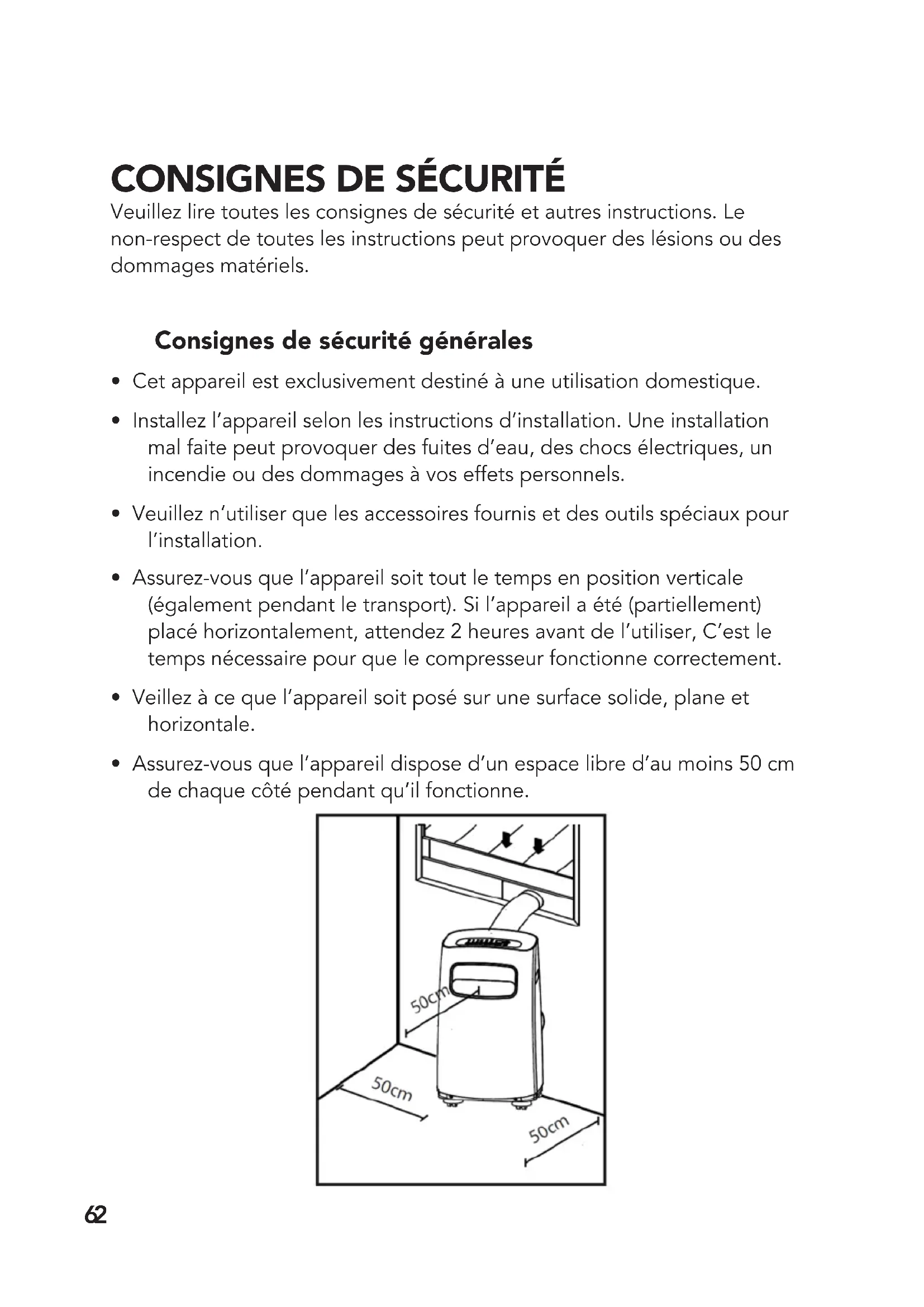 - Assurez-vous que l’appareil dispose d’un espace libre d’au moins 50 cm de chaque côté pendant qu’il fonctionne.63