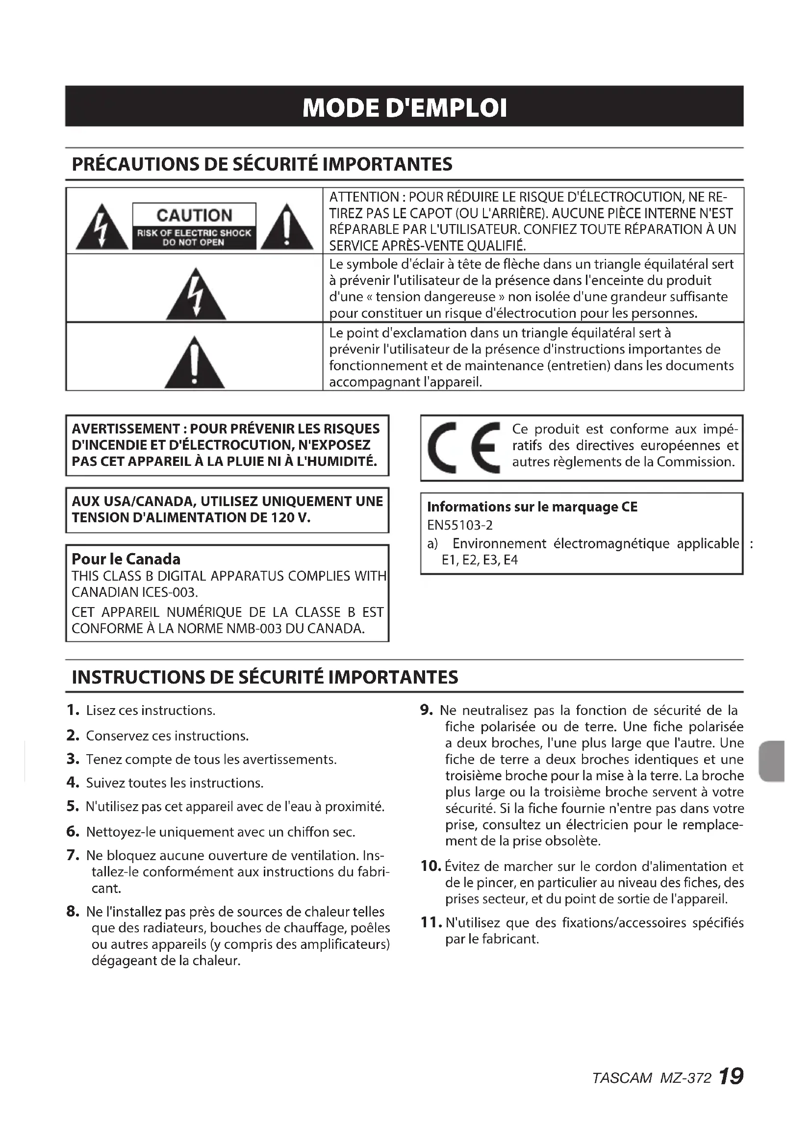 MODE D'EMPLOI MZ372 TASCAM