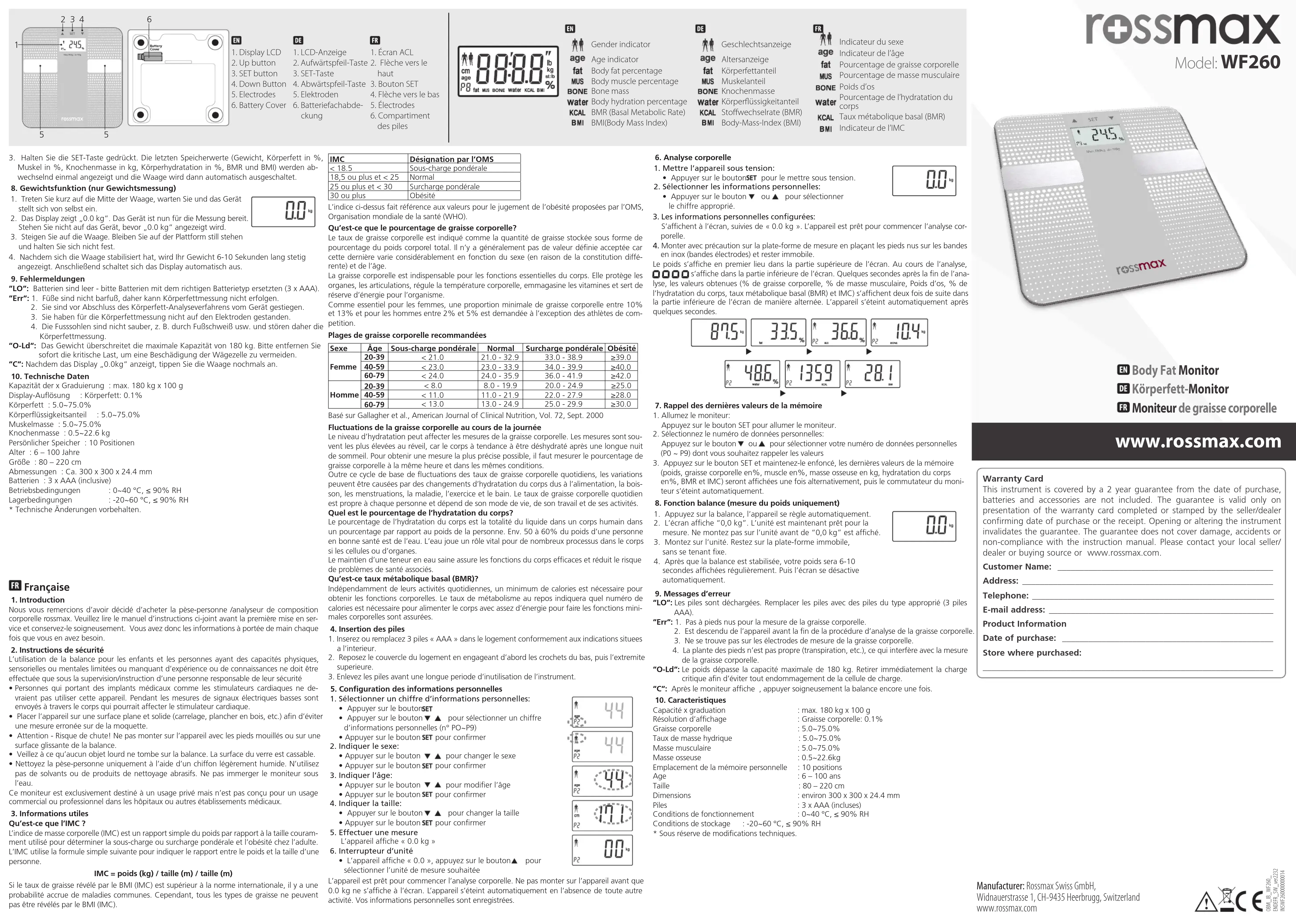 WF260 - Balance Rossmax - Notice d'utilisation et mode d'emploi gratuit