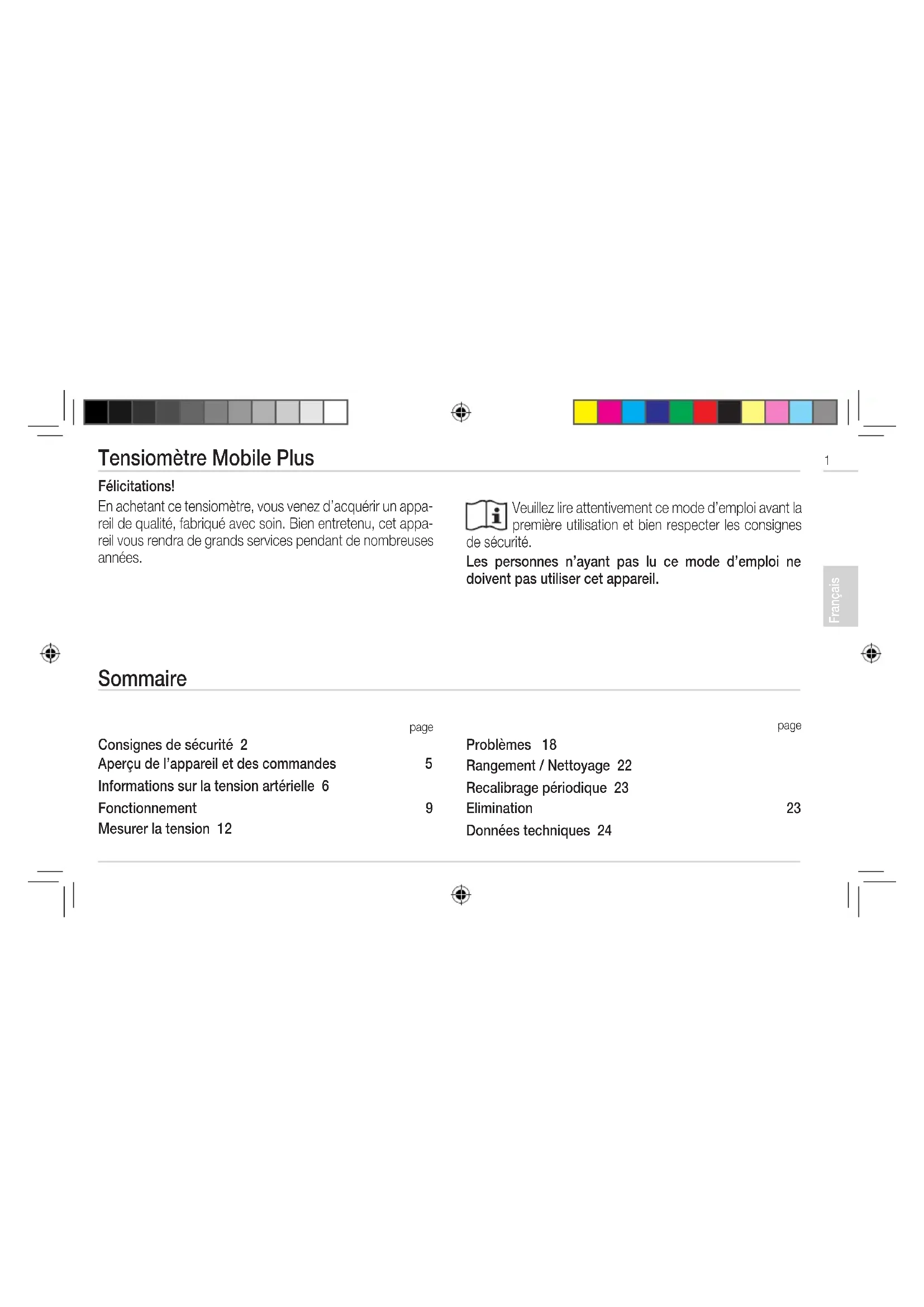Mobile Plus Tensiomètre1 Français Sommaire Félicitations! En achetant ce tensiomètre, vous venez d’acquérir un appa
