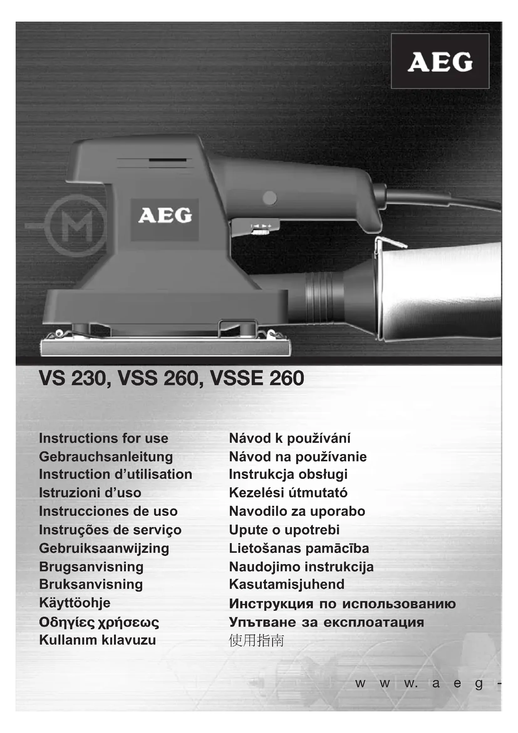VSS 260 - Ponceuse AEG - Notice d'utilisation et mode d'emploi gratuit