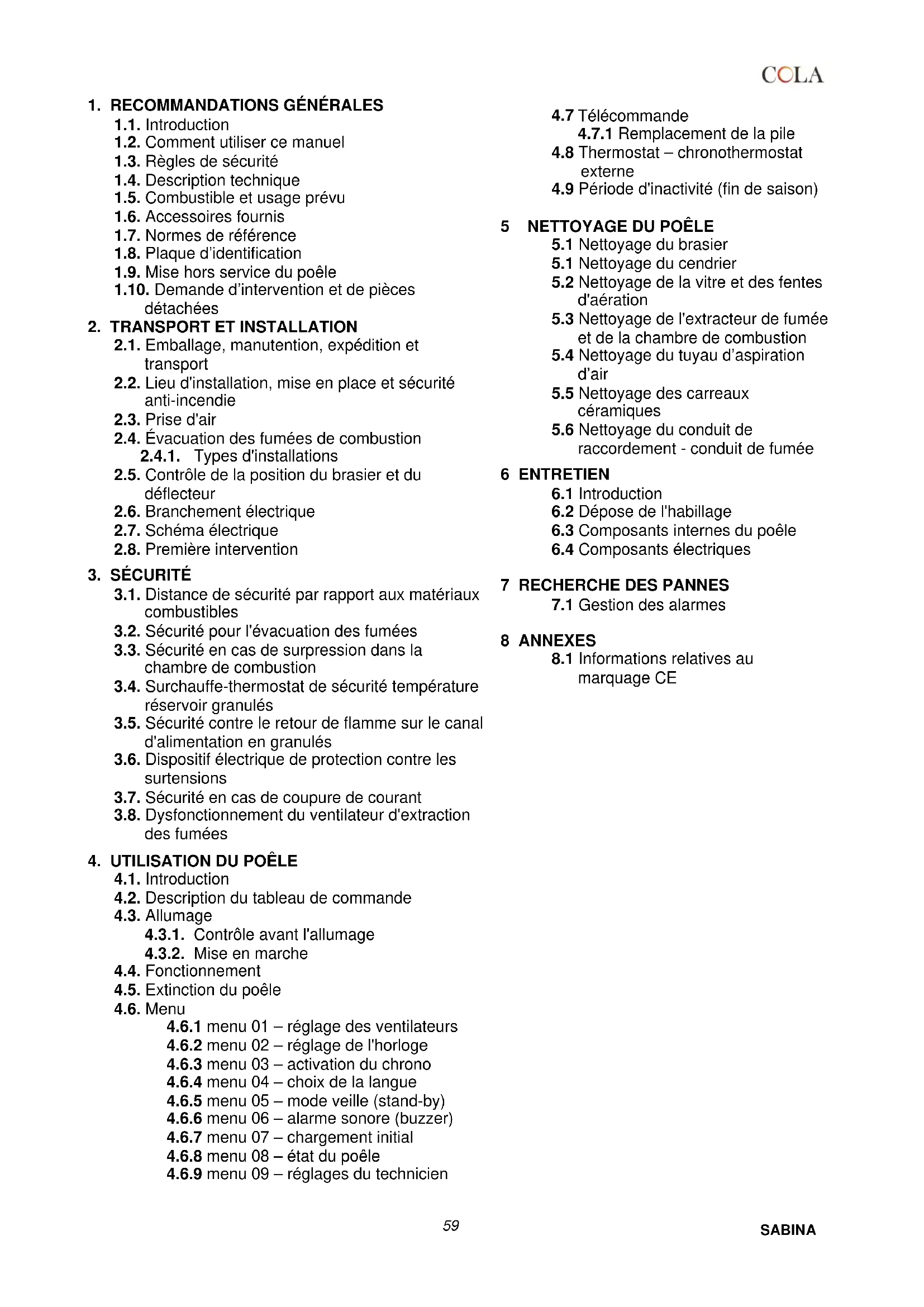 Sabina - Poêle Cola - Notice d'utilisation et mode d'emploi gratuit