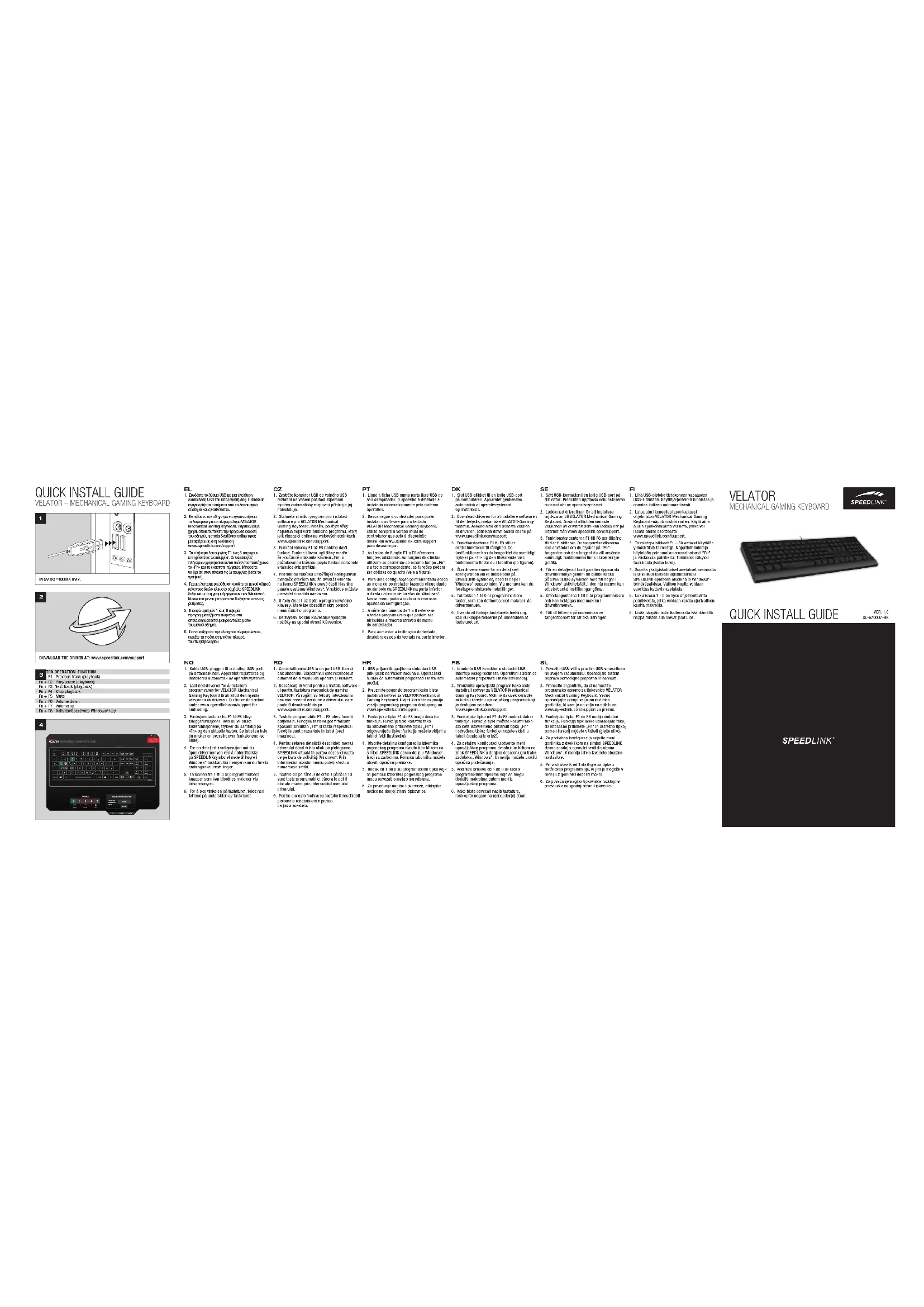 clavier VELATOR Mechanical Gaming Keyboard. Veuillez toujours utiliser la version actuelle du pilote disponible en téléchargement à l’adresse www.speedlink.com/support.