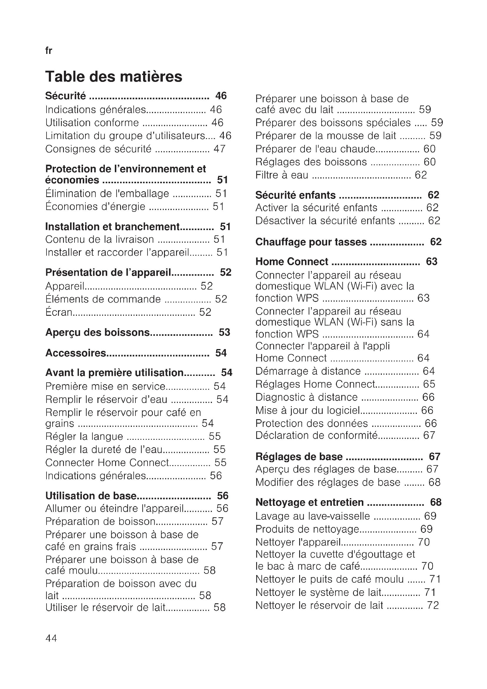 - Nettoyer le réservoir de lait fr p. 72