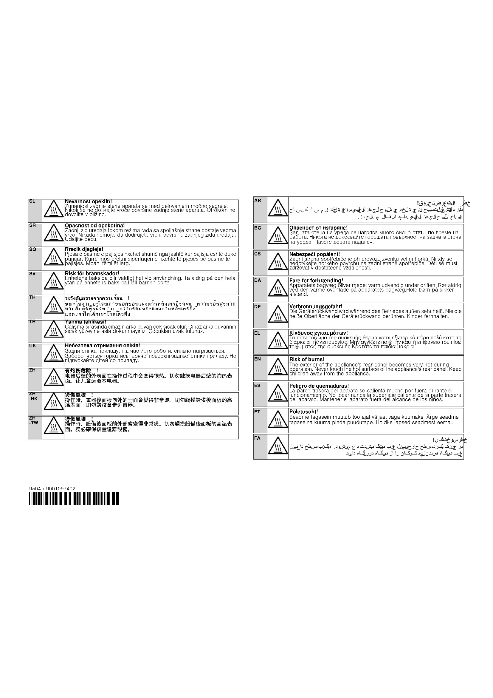 Risque de brûlure! En cours de fonctionnement, le dos de l'appareil à l'extérieur devient très chaud. Ne jamais toucher la surface chaude du dos de l'appareil. Tenir hors de portée des enfants.