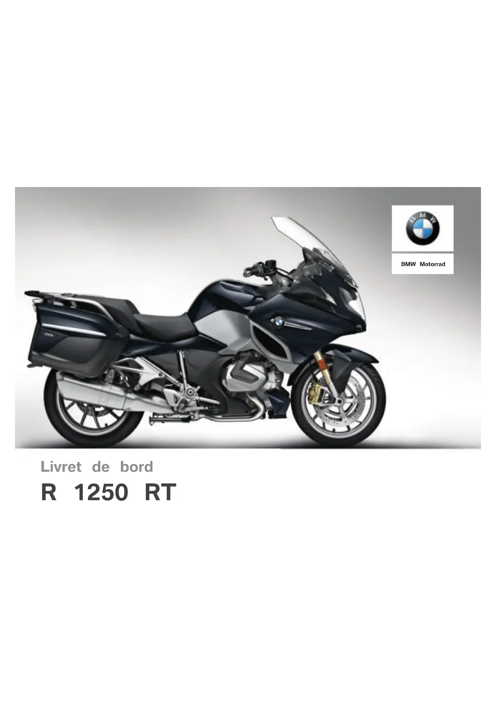 Livret de bord R 1250 RT BMW MotorradDonnées moto / concessionnaire Données de la moto Modèle Numéro d'identification du véhicule Code couleur Première immatriculation N° d'immatriculation Données du concessionnaire Interlocuteur au service après-vente Madame/Monsieur N° de téléphone Adresse du concessionnaire/Téléphone (cachet de la société)Bienvenue dans le monde de BMW Nous vous félicitons d'avoir porté votre choix sur une moto BMW Motorrad et vous accueillons dans le cercle des pilotes BMW. Familiarisez-vous avec votre nouveau véhicule afin d'être en mesure de vous déplacer en toute sécurité sur les routes. À propos de ce livret de bord Veuillez prendre le temps de lire ce livret de bord avant de prendre la route avec votre nou- velle BMW. Vous y trouverez des indications importantes pour l'utilisation de votre véhicule qui vous aideront à exploiter pleine- ment les avantages techniques de votre BMW. Vous trouverez en outre des in- formations sur l'entretien et la maintenance de votre moto qui vous permettront d'en optimiser la fiabilité, la sécurité et la valeur de revente. La justification de l'exécution des travaux de maintenance est une condition préalable à toute pres- tation fournie à titre commercial. Si vous vendez un jour votre BMW, n'oubliez pas de remettre aussi le livret de bord. Il consti- tue un élément important de votre véhicule. Suggestions et critiques Votre concessionnaire BMW Motorrad se fera un plaisir de vous conseiller et de répondre à toutes les questions que vous pourrez lui poser sur votre véhicule. Nous vous souhaitons beaucoup de plaisir au guidon de votre BMW ainsi qu'un bon voyage en toute sécurité BMW Motorrad.
