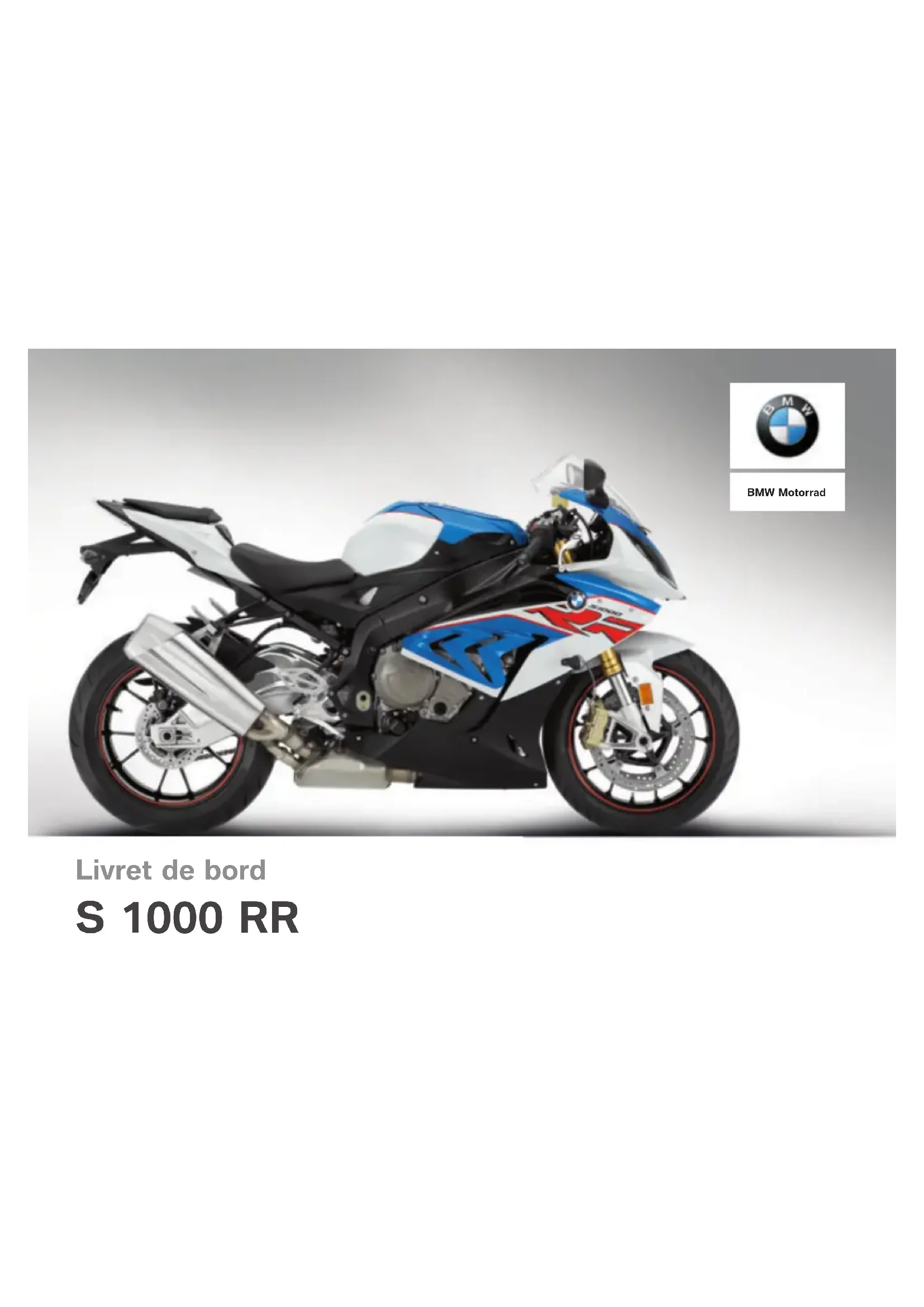 Livret de bord S 1000 RR BMW MotorradDonnées moto / concessionnaire Données de la moto Modèle Numéro d'identification du véhicule Code couleur Première immatriculation N° d'immatriculation Données du concessionnaire Interlocuteur au service après-vente Madame/Monsieur N° de téléphone Adresse du concessionnaire/Téléphone (cachet de la société)Bienvenue dans le monde de BMW Nous vous félicitons d'avoir porté votre choix sur une moto BMW Motorrad et vous accueillons dans le cercle des pilotes BMW. Familiarisez-vous avec votre nouveau véhicule afin d'être en mesure de vous déplacer en toute sécurité sur les routes. À propos de ce livret de bord Veuillez prendre le temps de lire ce livret de bord avant de prendre la route avec votre nou- velle BMW. Vous y trouverez des indications importantes pour l'utilisation de votre véhicule qui vous aideront à exploiter pleine- ment les avantages techniques de votre BMW. Vous trouverez en outre des in- formations sur l'entretien et la maintenance de votre moto qui vous permettront d'en optimiser la fiabilité, la sécurité et la valeur de revente. La justification de l'exécution des travaux de maintenance est une condition préalable à toute pres- tation fournie à titre commercial. Si vous vendez un jour votre BMW, n'oubliez pas de remettre aussi le livret de bord. Il consti- tue un élément important de votre véhicule. Suggestions et critiques Votre concessionnaire BMW Motorrad se fera un plaisir de vous conseiller et de répondre à toutes les questions que vous pourrez lui poser sur votre véhicule. Nous vous souhaitons beaucoup de plaisir au guidon de votre BMW ainsi qu'un bon voyage en toute sécurité BMW Motorrad.