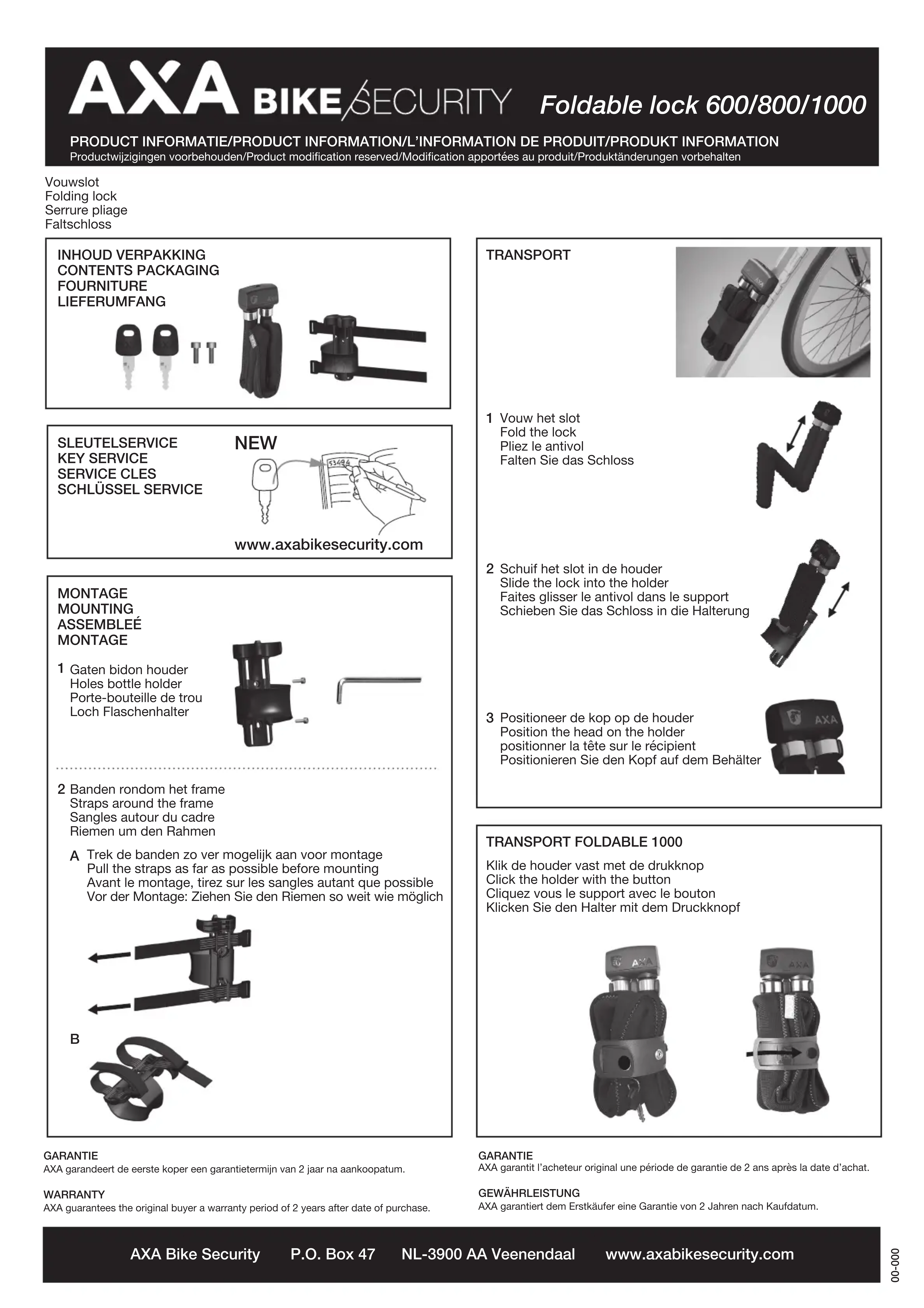 Foldable 1000 - Accessoire de vélo AXA - Notice d'utilisation et mode d'emploi gratuit