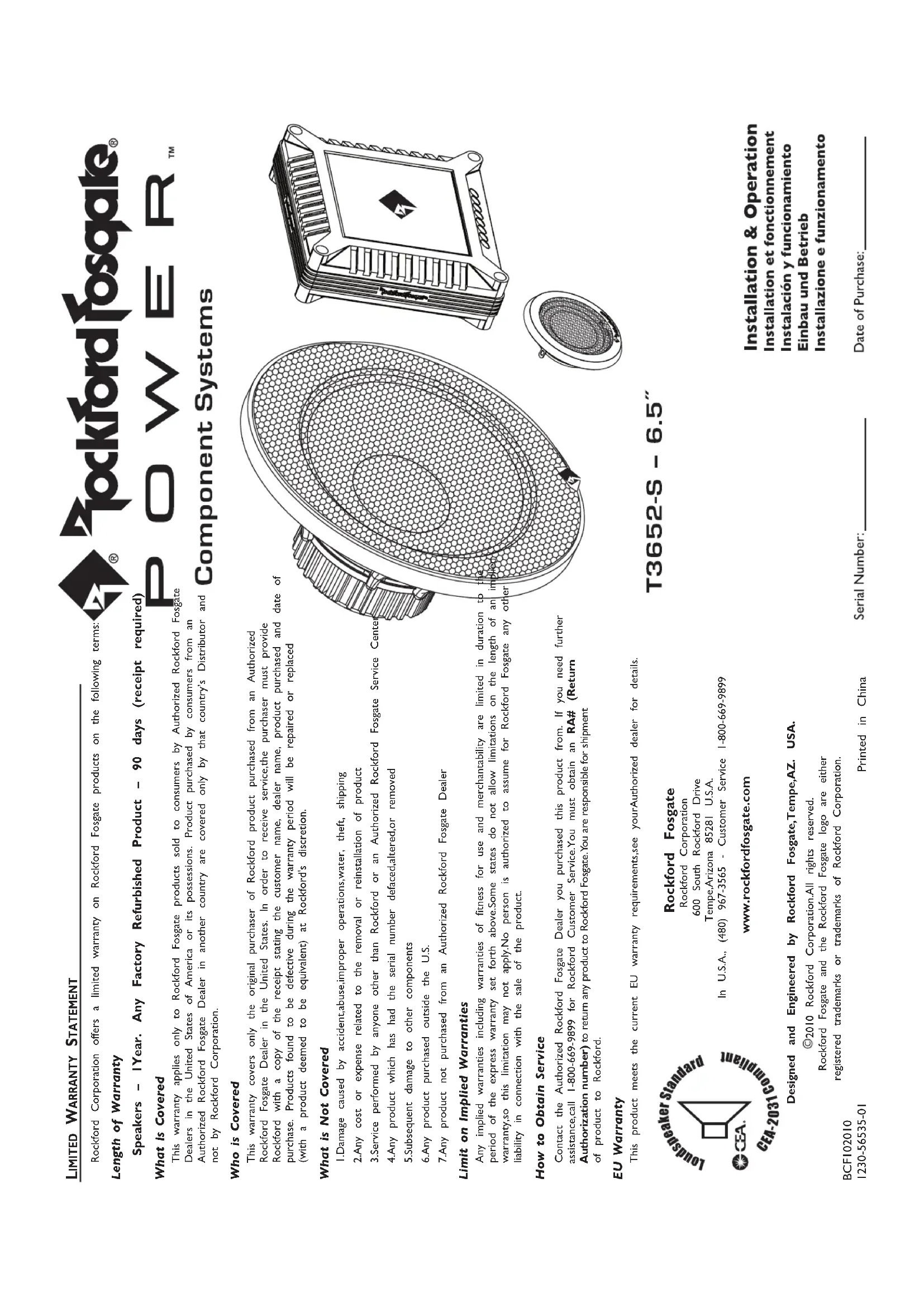 Retrouvez gratuitement la notice de l'appareil Power T3652S Rockford Fosgate au format PDF.