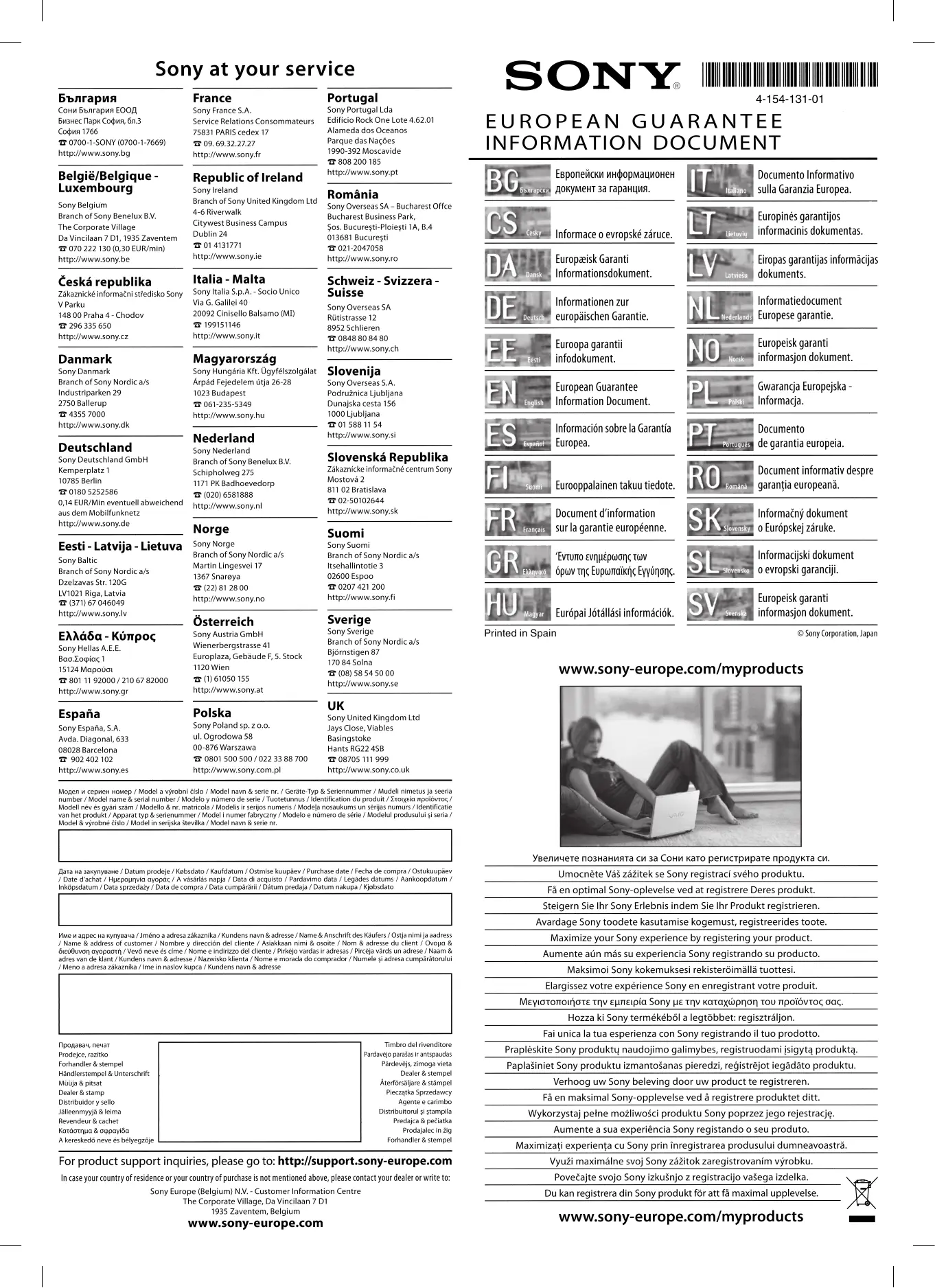 | Pièces détachées et réparabilité | Réparabilité limitée, pièces disponibles via le service après-vente Sony |