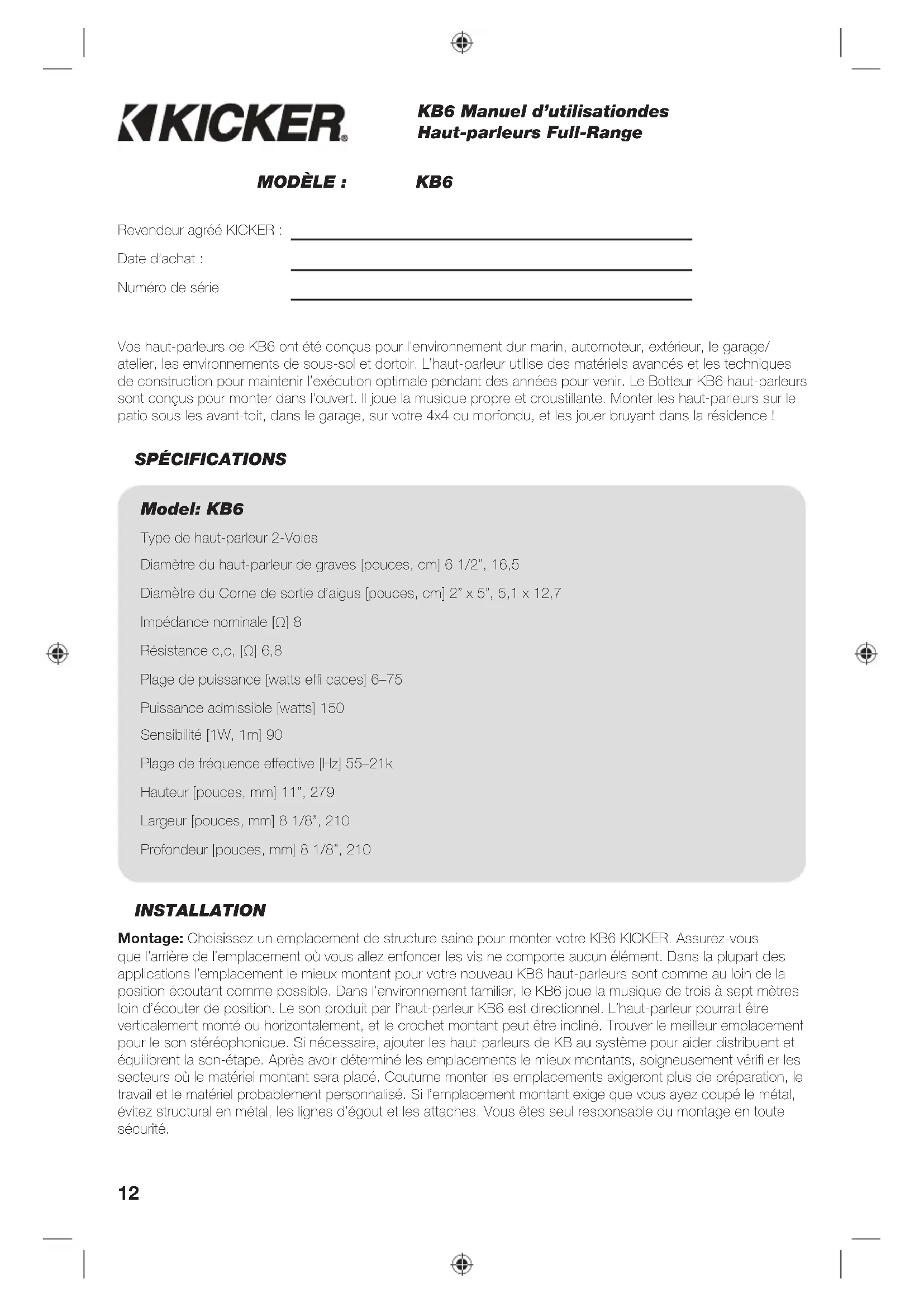 KB6 - Haut-parleur KICKER - Notice d'utilisation et mode d'emploi gratuit