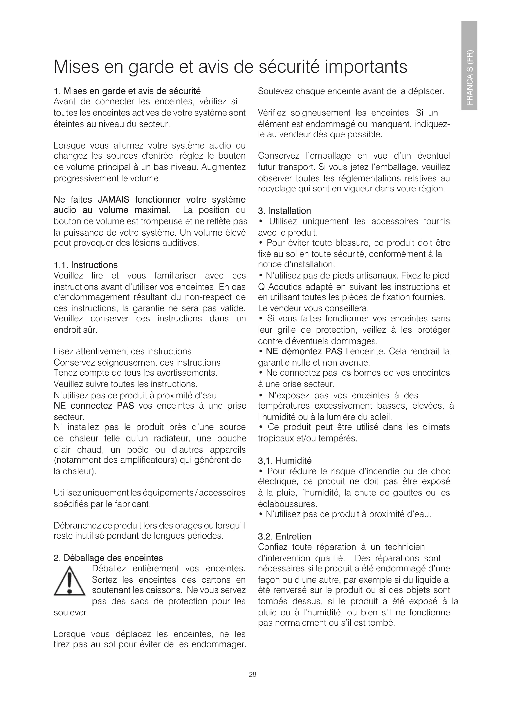 MODE D'EMPLOI 3030i Q ACOUSTICS