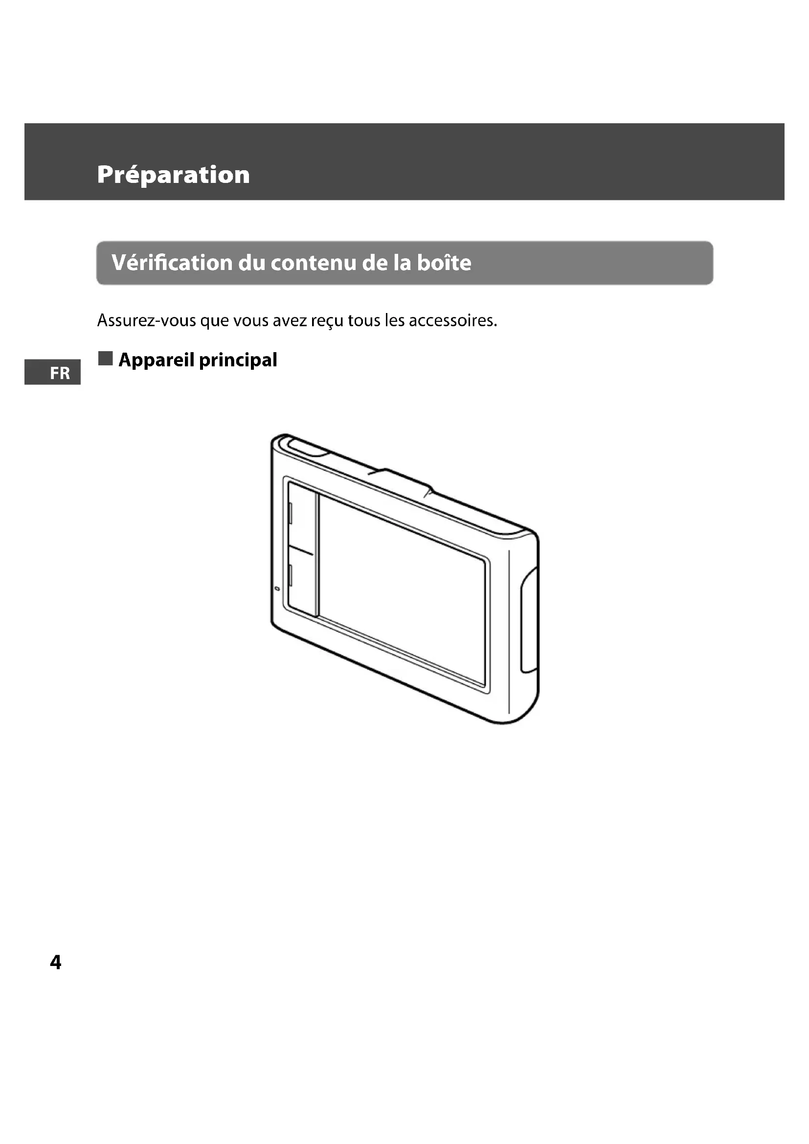 Préparation Vérification du contenu de la boîte Assurez-vous que vous avez reçu tous les accessoires. Appareil principalSONY NV-U44 (US,FR,ES) 4-000-805-11 (1)