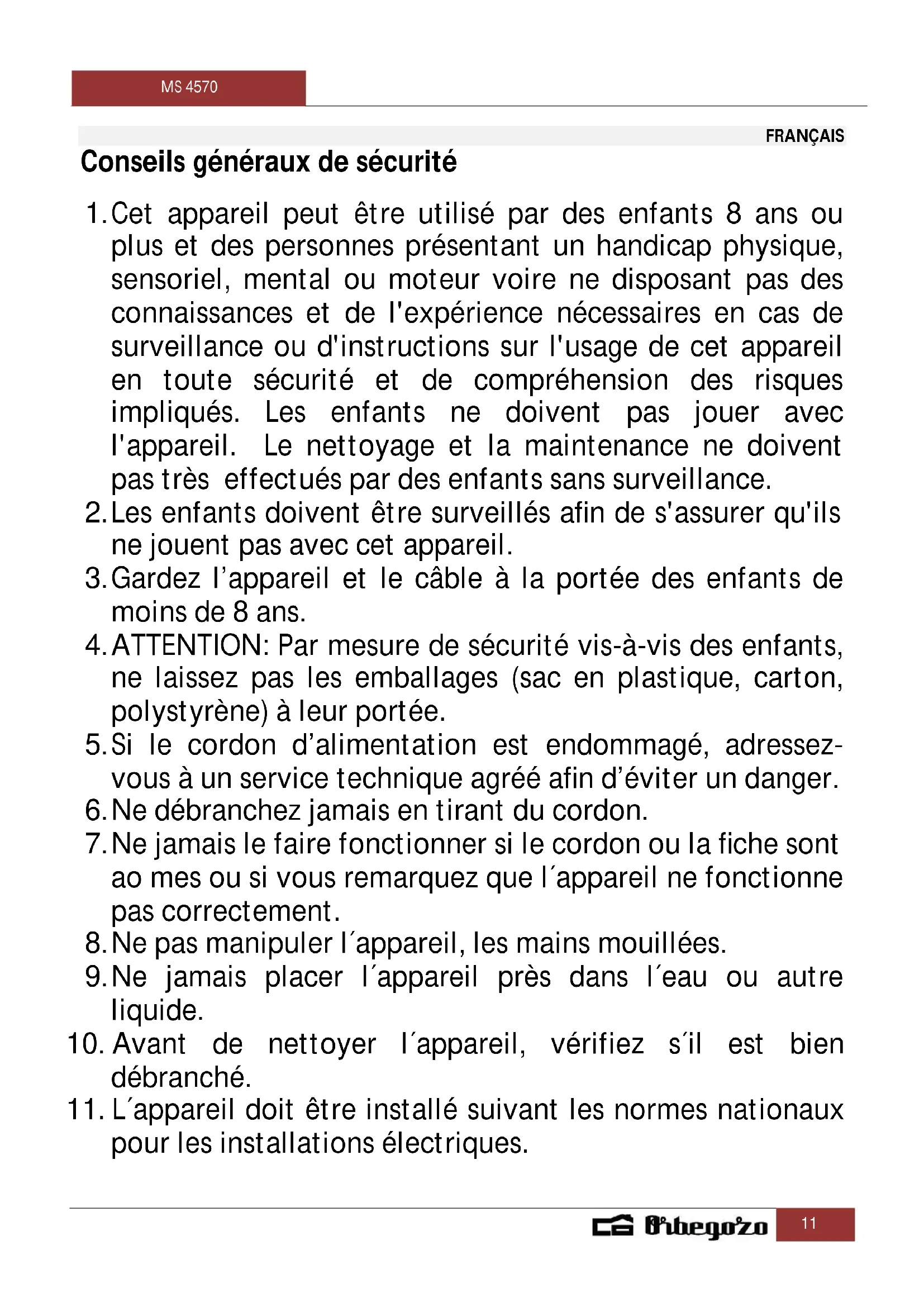 MODE D'EMPLOI MS 4570 Orbegozo